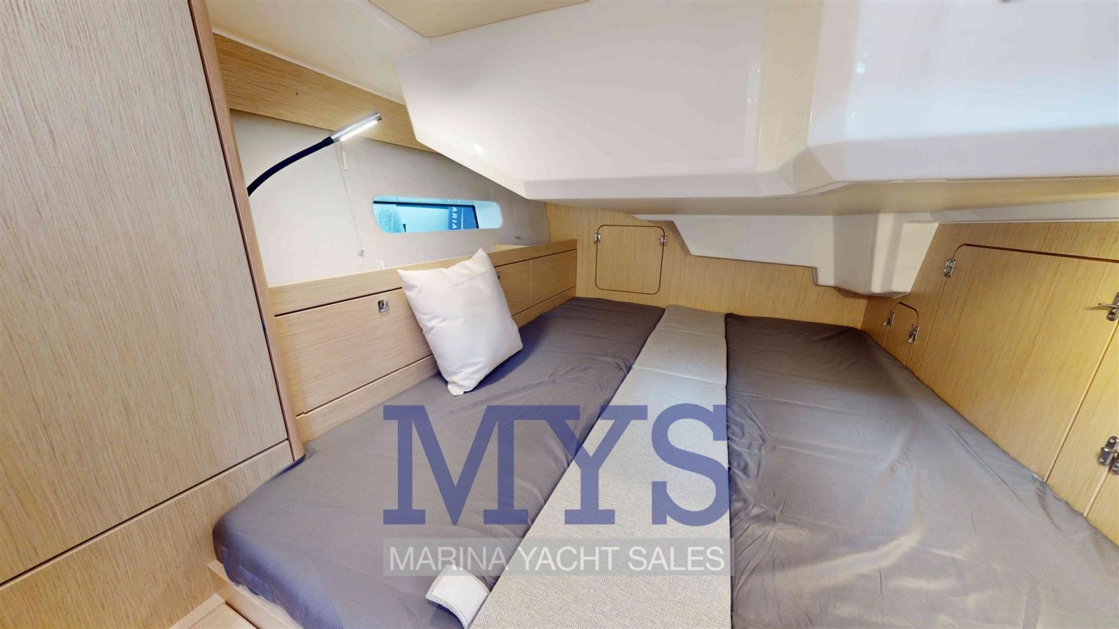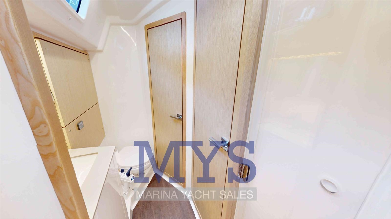 CABINE PROPRIÉTAIRE À L’AVANT AVEC SALLE DE BAIN ET DOUCHE SÉPARÉES.