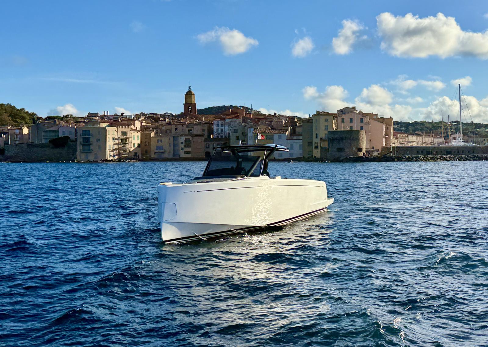 IPS 600 (2x440 CV), Climatisation, Groupe Électrogène, Joystick, T-Top Bimini Électrique.