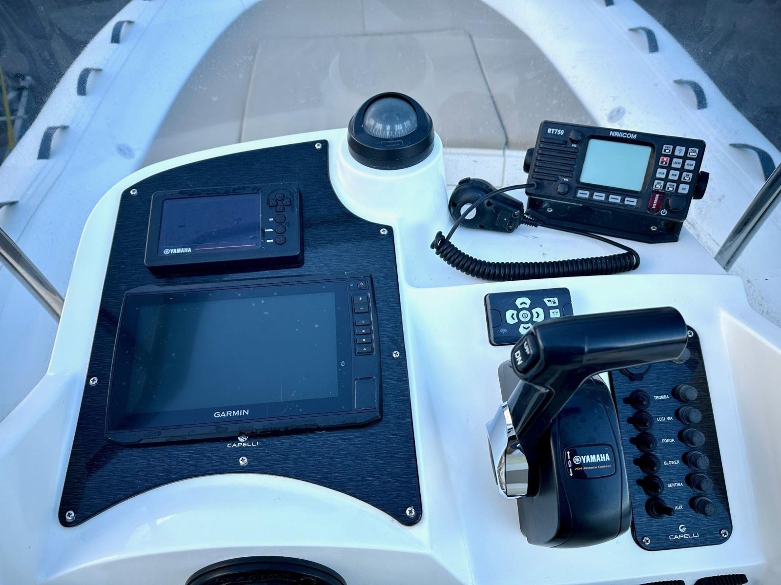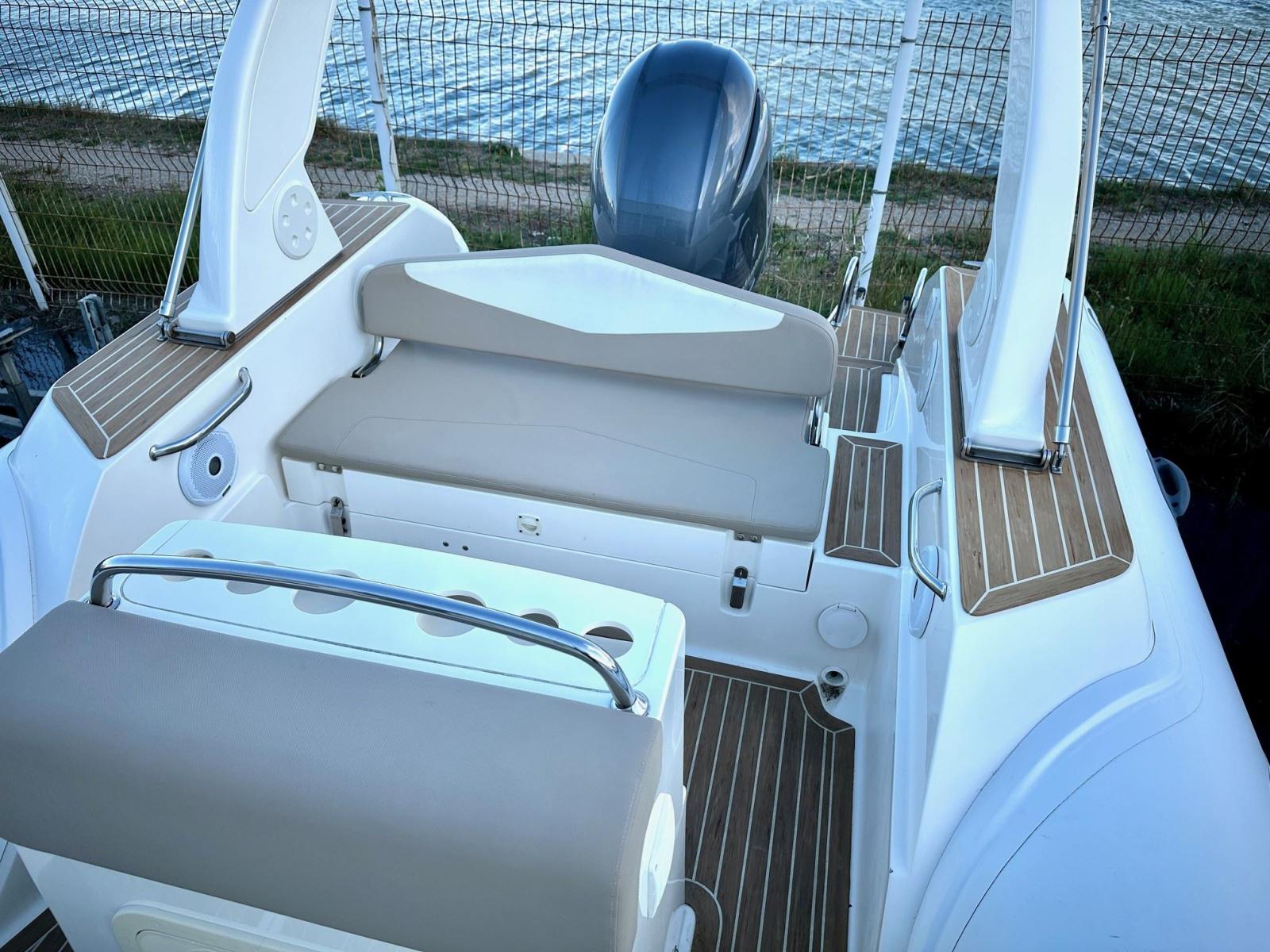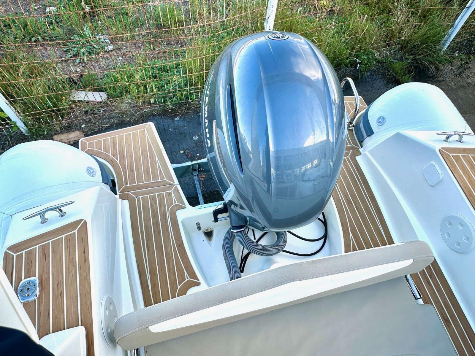 Version luxe, cockpit en teck, rollbar polyester, extension plateformes arrières, GPS/Sondeur GARMIN, VHF ...