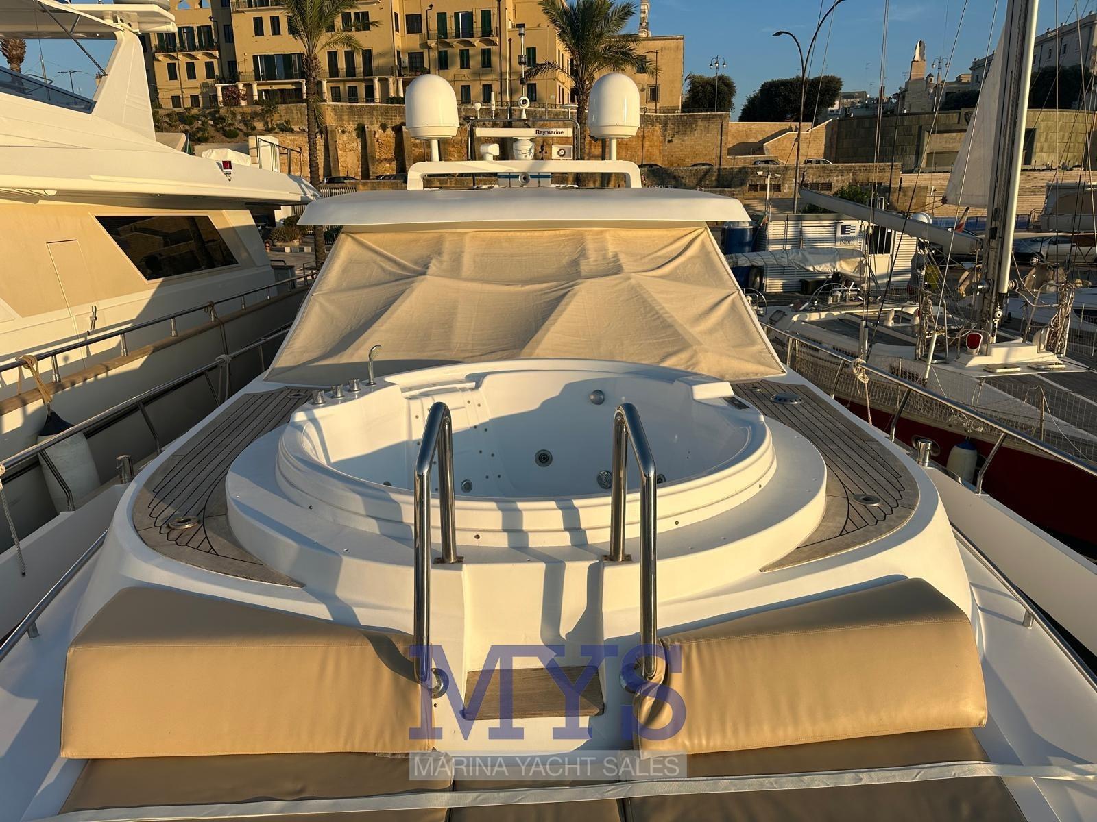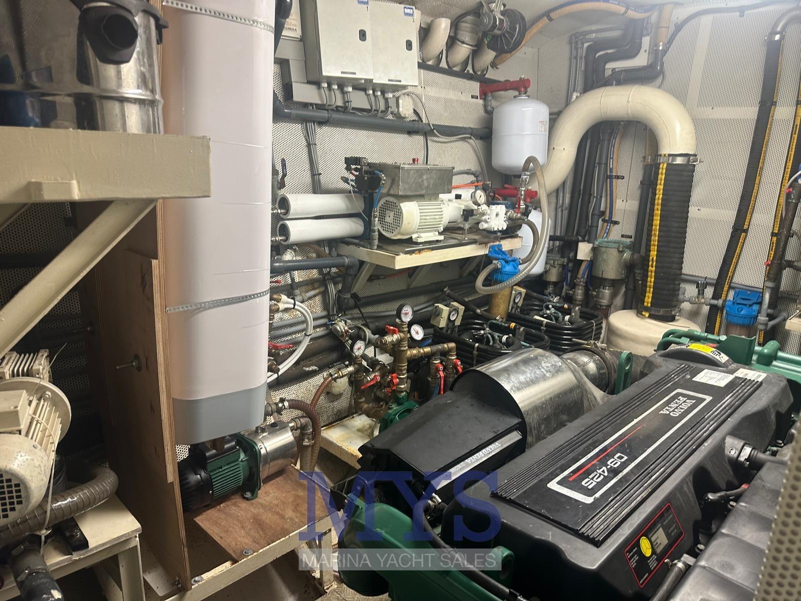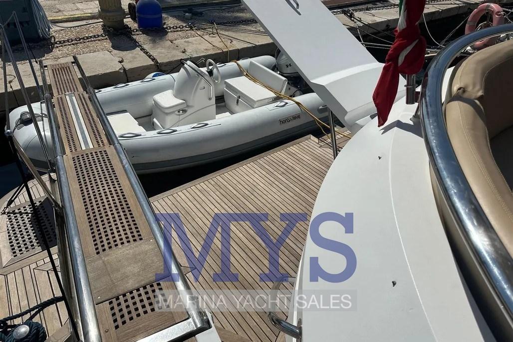 Alarme gaz, Alarme moteur, Alarme de pompe de cale, Eau sous pression, Radeau de sauvetage (2024), Batteries (2025), Passavant en teck, Chargeur de batterie (2024), Câble d’alimentation à quai, Filères, 2 Douche de cockpit, Phare de poursuite, Extincteur(s) fixe(s), Lavage de chaine, Lavabo dans le cockpit, Éclairage de courtoisie, 2 Spots sous-marins (Blu), Moniteur de batterie, Défenses, Passerelle, Plateforme arrière (Idraulica 600 Kg), Pompe de cale automatique, Pompe de cale manuelle, Pont en teck, Porte latérale, Porte latérale (Elettrica), Cockpit en teck, Prise de quai, Connexion eau sous pression à quai, Onduleur, Guindeau électrique, Echelle de bain, Stabilisateurs (Idraulici Vetus), table de cockpit, Corne, 2 Winch électrique arrière, Winch électrique avant.