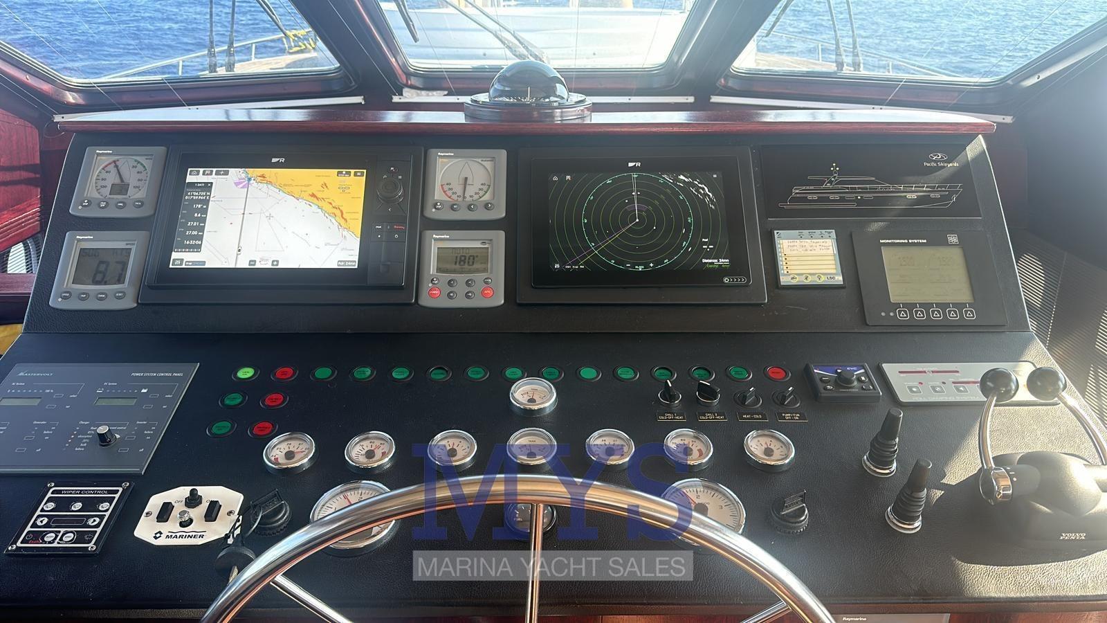 AIS (Da attivare), Indicateur d'angle de barre, Antenne radar (2024), Commande électrique, Ordinateur fixe de bord, Compteur de chaîne, DSC VHF, Indicateur de virage, Cartes et guides, MeteoFax, Moniteur de consommation, Plotter GPS, Panneau de commande, 2 Radio VHF, Instruments de mesure pour moteurs.