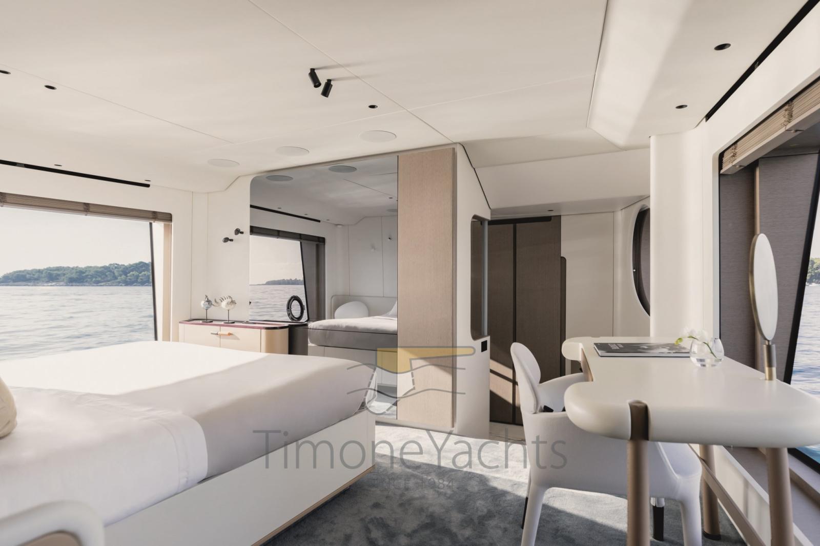 Eau Chaude, BBQ/ Grill, Ballon d'eau chaude, Coffre-fort, Air Conditionné, Connexion à internet, Gradateur de lumière, Dessalinisateur, Plancher intérieur en bois, Prises interieures 12v, Prises interieures 220v, Réservoir d'eau noire, Caméra vidéo, Toilettes électriques.