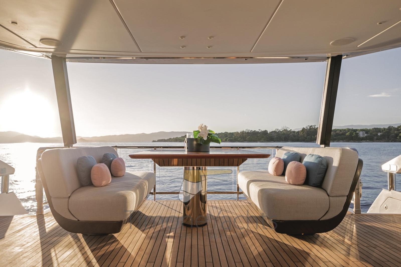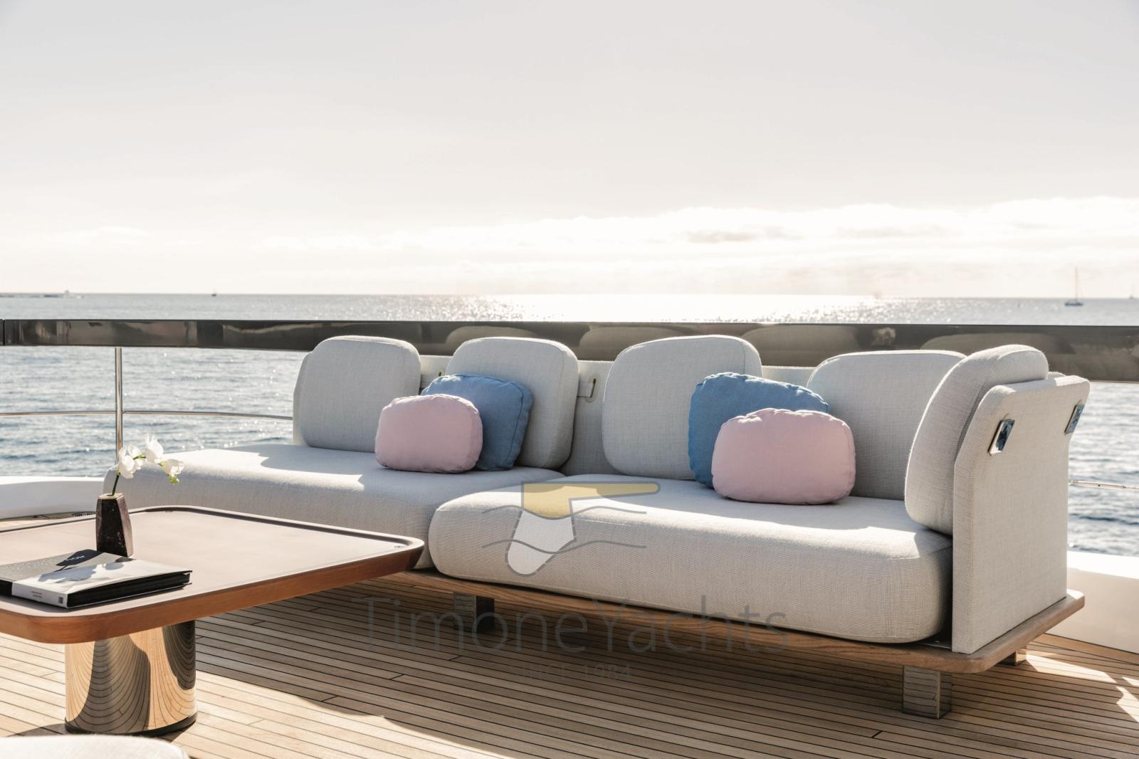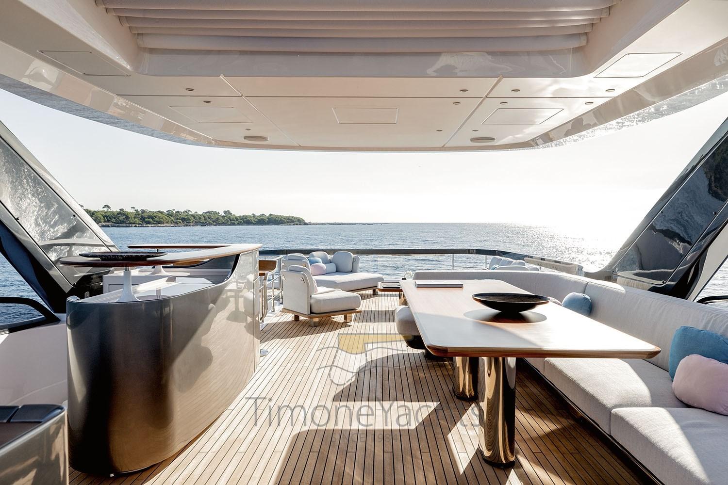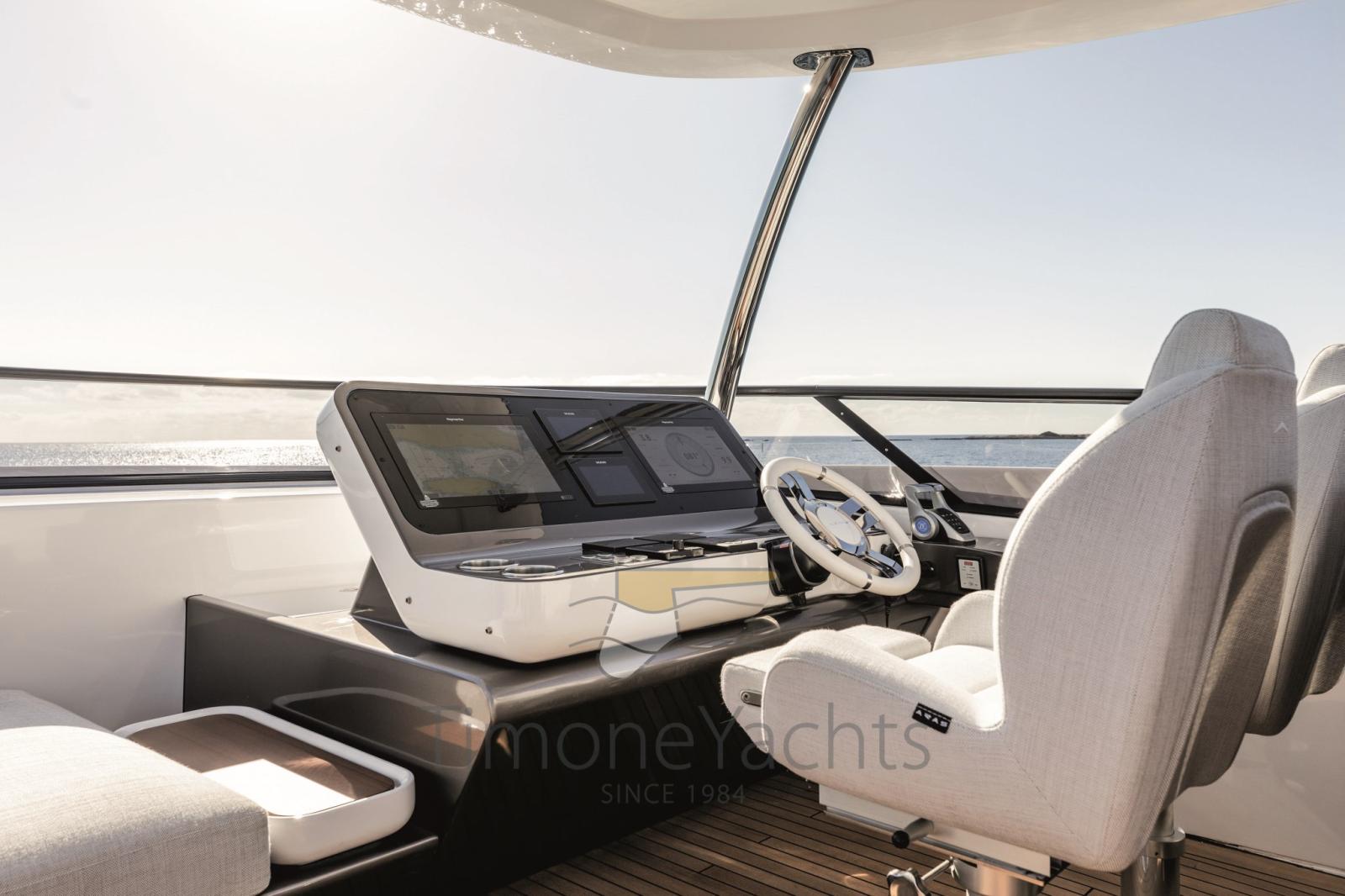 Alarme gaz, Alarme moteur, Alarme de pompe de cale, Alternateur, Auto Dynamic Trim Interceptor, Eau sous pression, Trim hydraulique, Passavant en teck, Câble d’alimentation à quai, Douche de cockpit, Double barre à roue, Flaps électriques, Garage à annexe, Hard top, Lavage de chaine, Lavabo dans le cockpit, Passerelle, Plateforme arrière, Pompe de cale automatique, Pompe de cale manuelle, Pont en teck, Porte latérale, Porte latérale, Cockpit en teck, Prise de quai, Connexion eau sous pression à quai, Guindeau électrique, Echelle de bain, table de cockpit, Corne, Winch électrique arrière, Winch électrique avant.