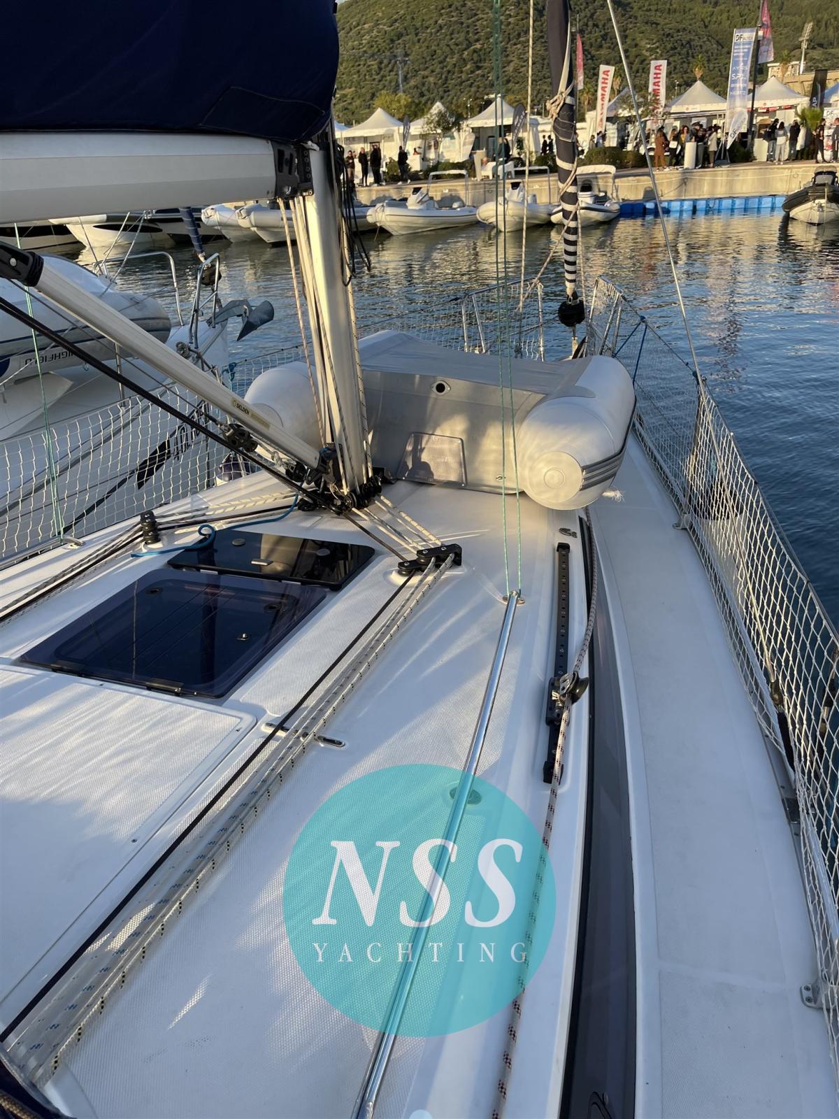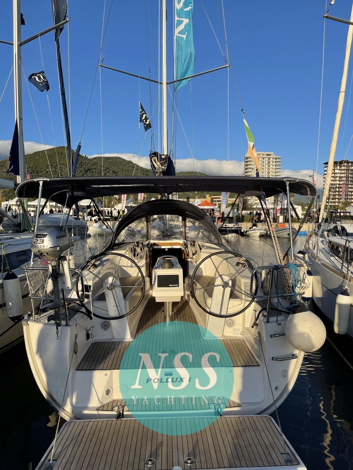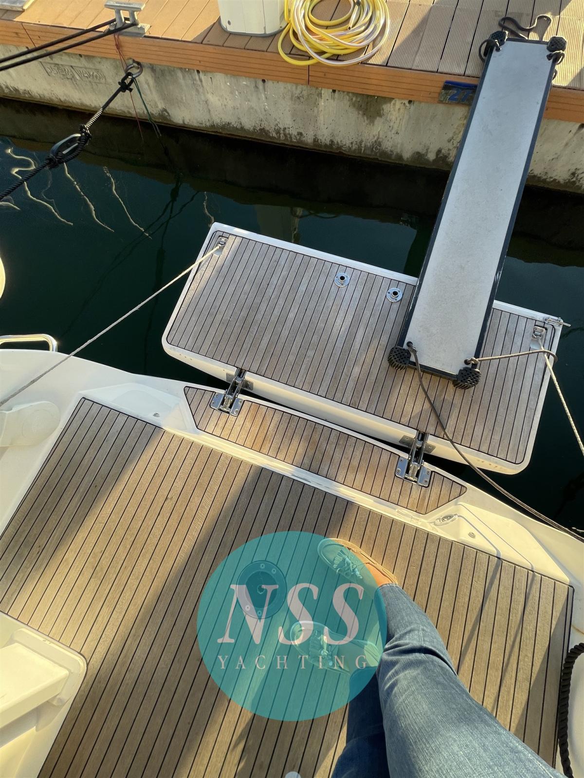 Eau sous pression, Douche de cockpit, Éclairage de courtoisie, Cockpit en teck, Prise de quai, Guindeau électrique, Echelle de bain, Chaise support HB, table de cockpit, Windex.
