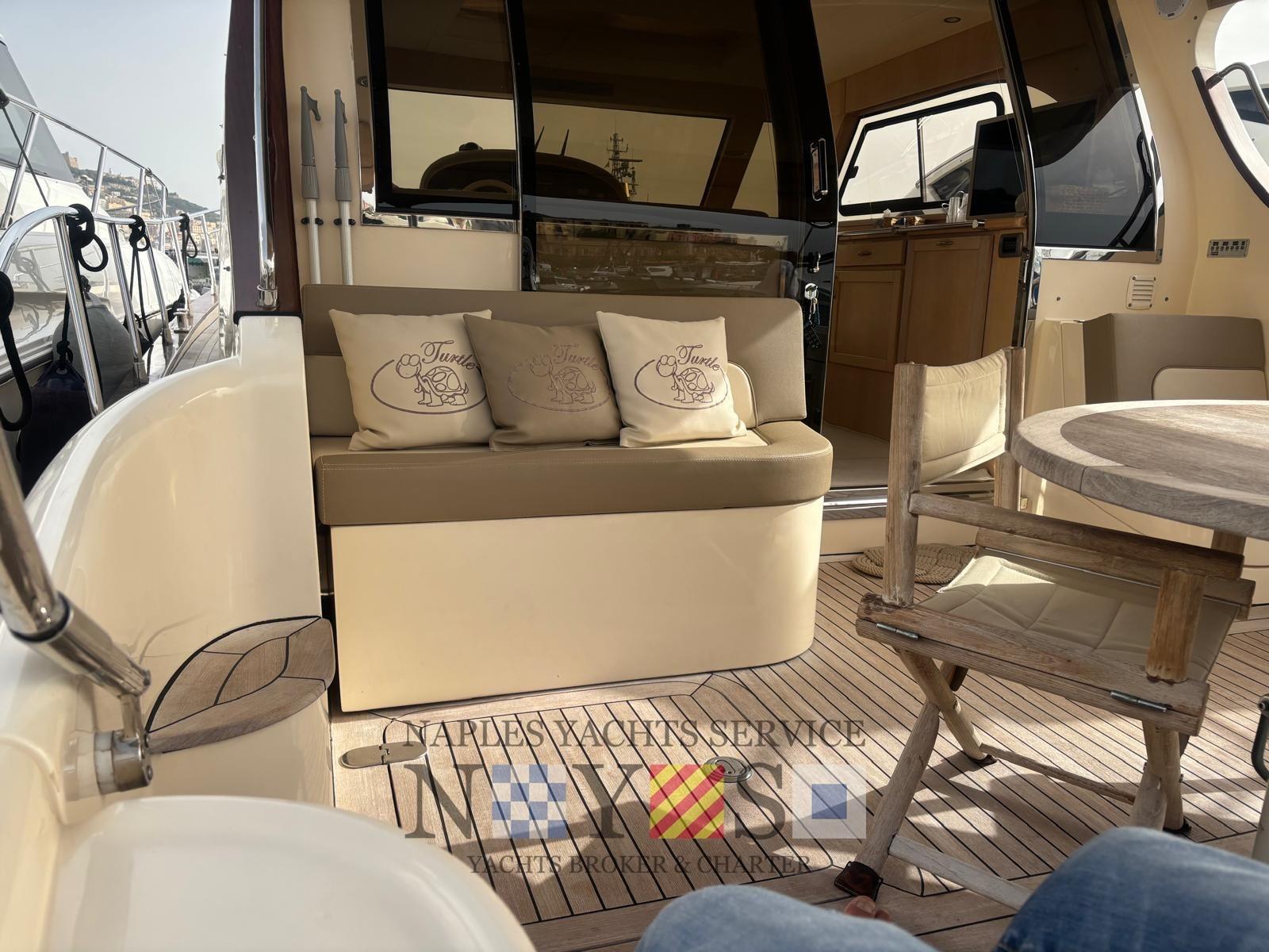 Alarme moteur, Eau sous pression, Douche de cockpit, Flaps hydrauliques, Indicateurs de flaps, Éclairage de courtoisie, Plateforme arrière, Pompe de cale automatique, Pont en teck, Cockpit en teck, Prise de quai, Onduleur, Guindeau électrique, Echelle de bain, table de cockpit.
