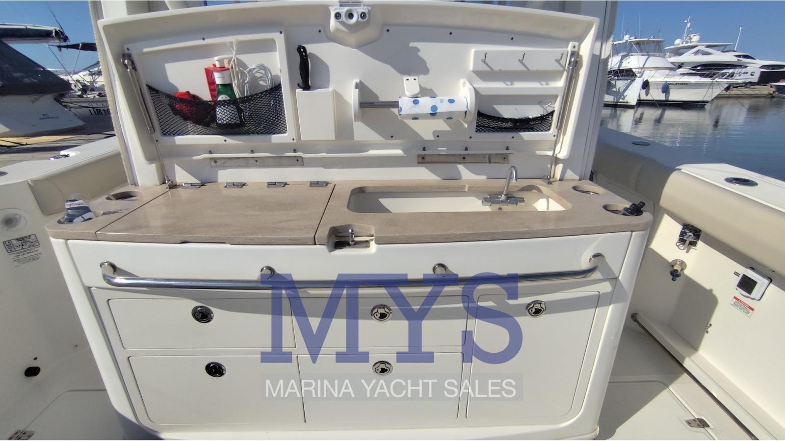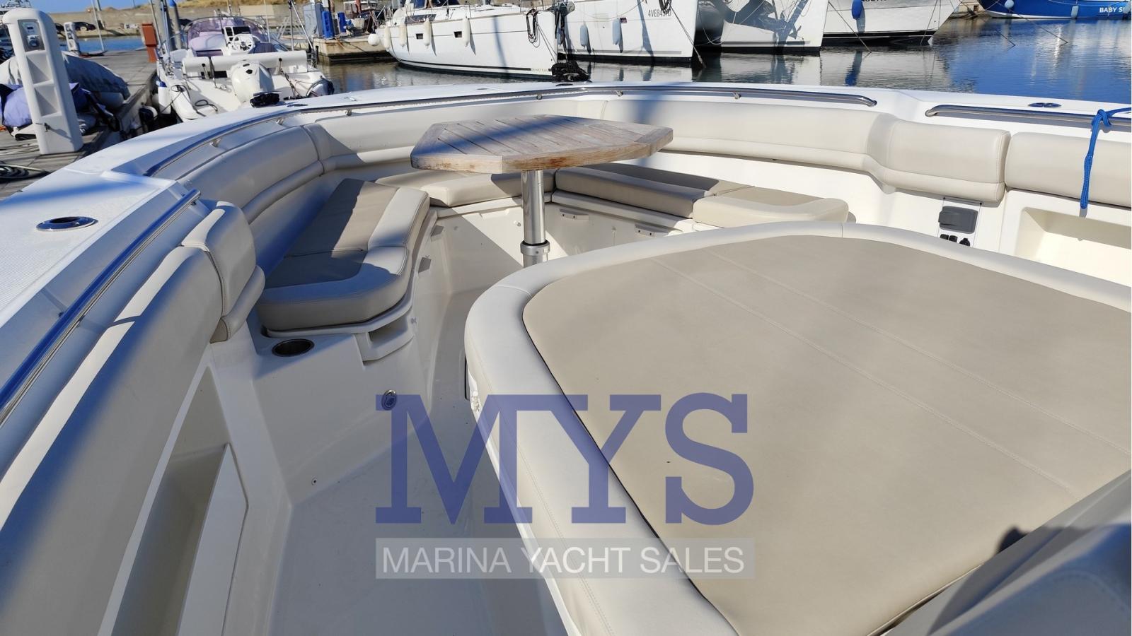 Le Boston Whaler 380 Outrage est un bateau de luxe en mer conçu pour offrir des performances, un confort et une polyvalence, parfait à la fois pour la pêche sportive et la croisière d’une journée. Forces: