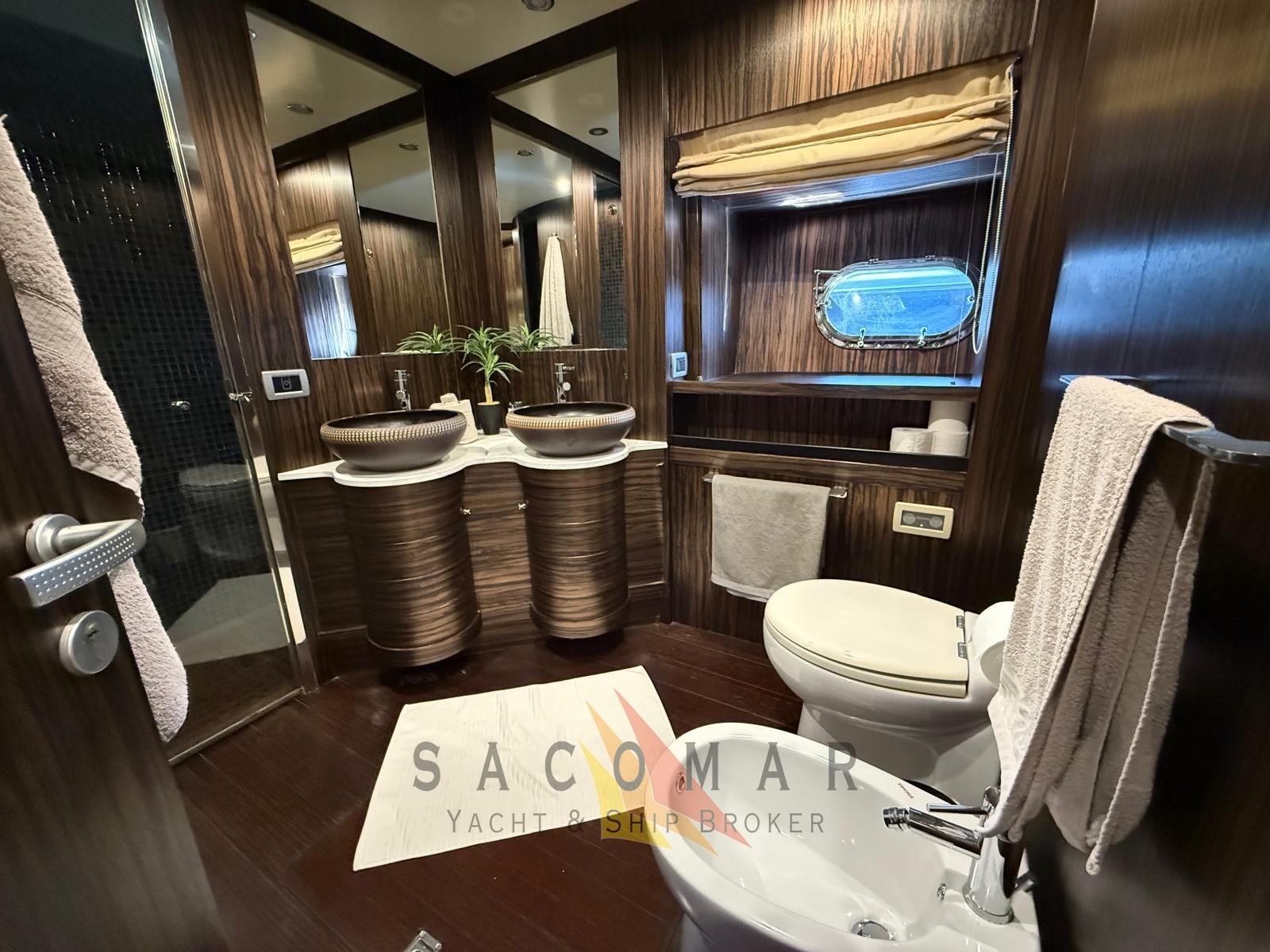 Eau sous pression, 10 Batteries, 2 Chargeur de batterie (Mastervolt 24/110), Bossoirs, Jet-ski, Passerelle (Besenzoni).