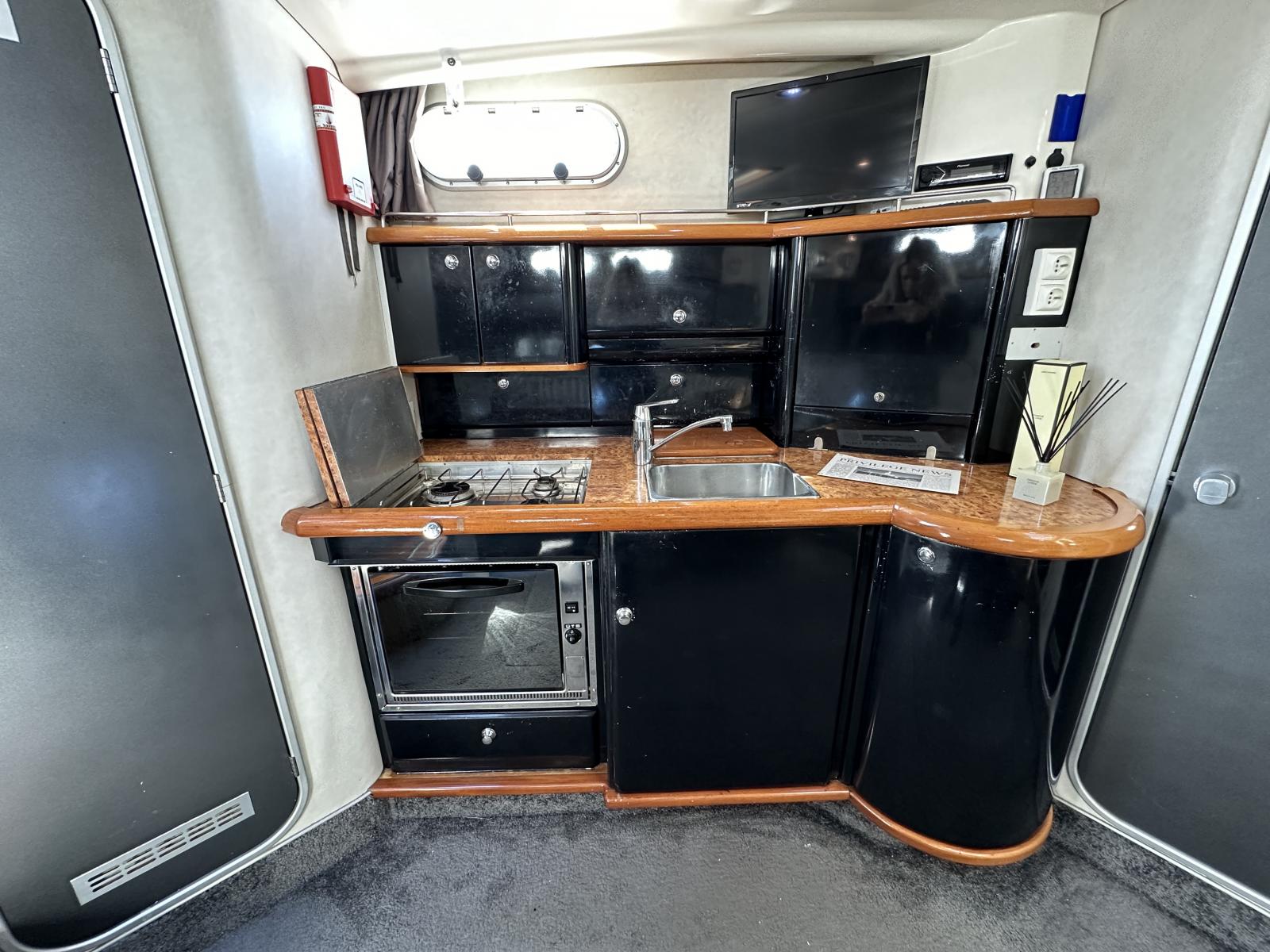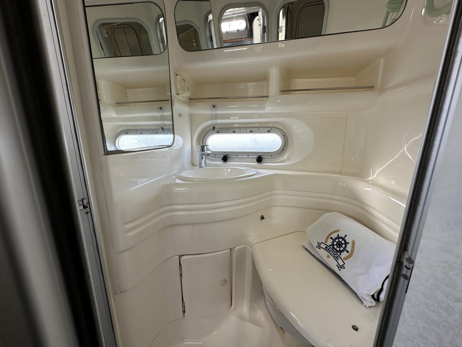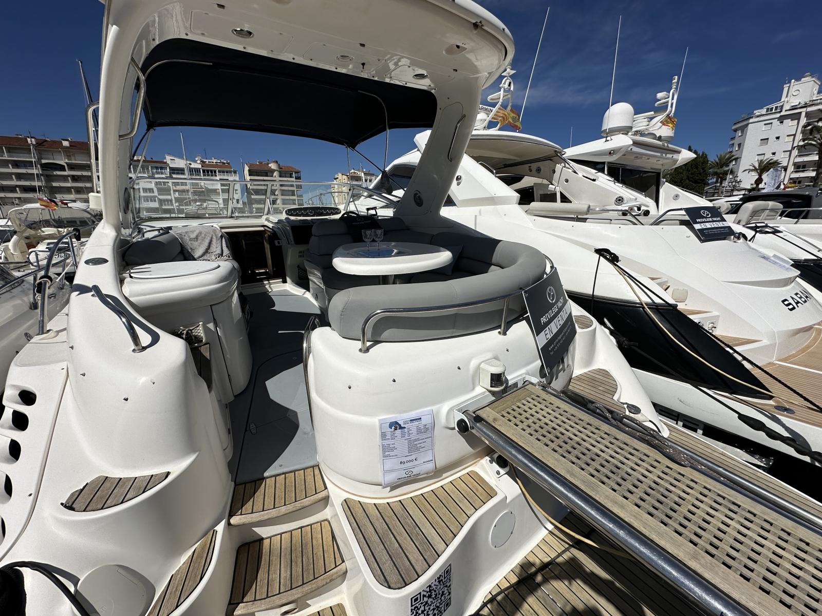 La réputation des chantiers anglais n’est plus à faire, Sealine ne fait pas exception. Ce Sealine 37 de 11m,30 a été refité au niveau de l’électronique, des moteurs, des flaps, de la sellerie. Ses 2 Cummins Mercruiser de 350cv. auront de quoi vous ravir et avec ses commandes électroniques et le propulseur d’étrave les manoeuvres n’auront aucun secret pour vous.