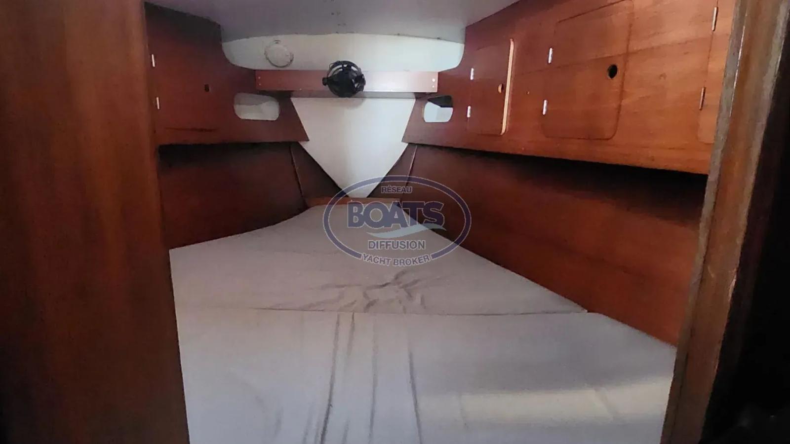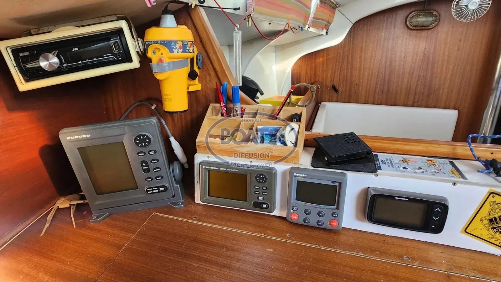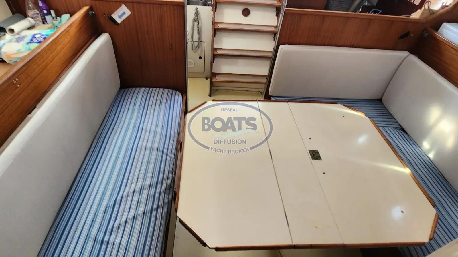 VISIBLE À LA ROCHELLE - CONTACTEZ JEAN-PIERRE OU AUDREY AU 06 09 42 34 55 - Le Gin Fizz de 1979, version à deux cabines, offre un agencement fonctionnel et spacieux. La cuisine en L fait face à une table à cartes avec couchette navigateur attenante. Le carré, particulièrement vaste, peut accueillir jusqu’à cinq couchages. À l’avant, on trouve les WC ainsi qu’une cabine double aménagée dans la pointe. La cabine arrière, totalement indépendante, est accessible par une seconde descente.
