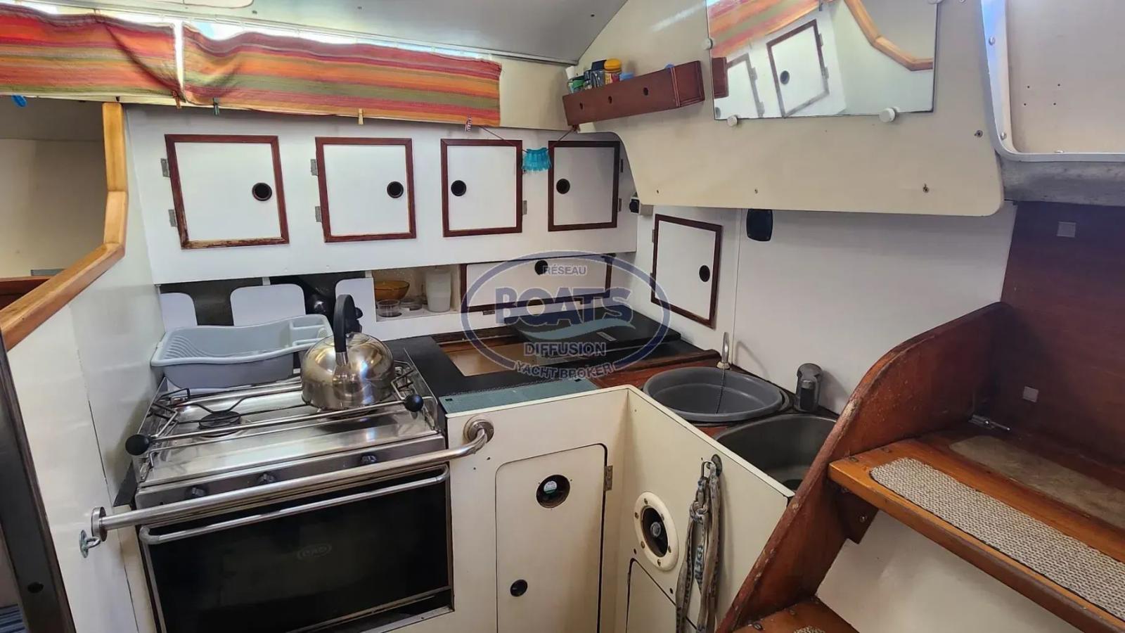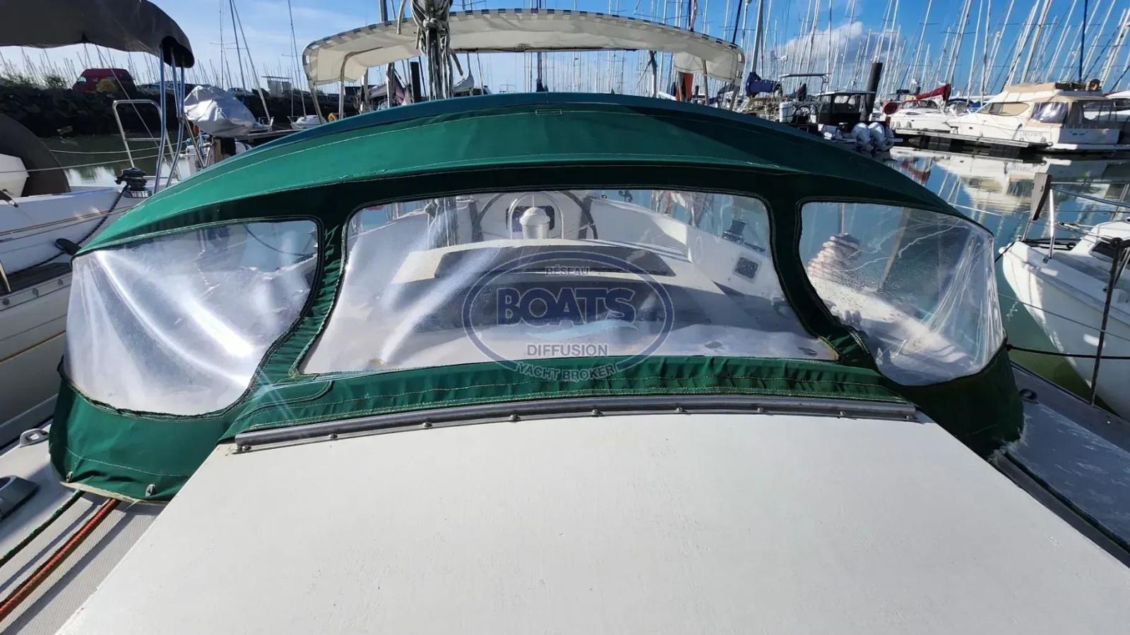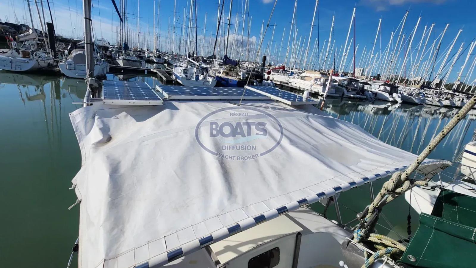 VISIBLE À LA ROCHELLE - CONTACTEZ JEAN-PIERRE OU AUDREY AU 06 09 42 34 55 - Le Gin Fizz de 1979, version à deux cabines, offre un agencement fonctionnel et spacieux. La cuisine en L fait face à une table à cartes avec couchette navigateur attenante. Le carré, particulièrement vaste, peut accueillir jusqu’à cinq couchages. À l’avant, on trouve les WC ainsi qu’une cabine double aménagée dans la pointe. La cabine arrière, totalement indépendante, est accessible par une seconde descente.