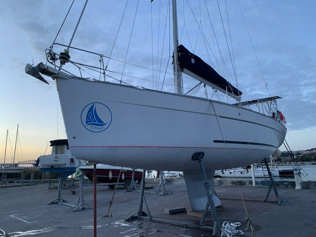 Toutes les vannes & passes coques sont neuves, 2 sous-couches de traitement Epoxy + antifouling- Remplacement des stickers BENETEAU + Bande latérale.