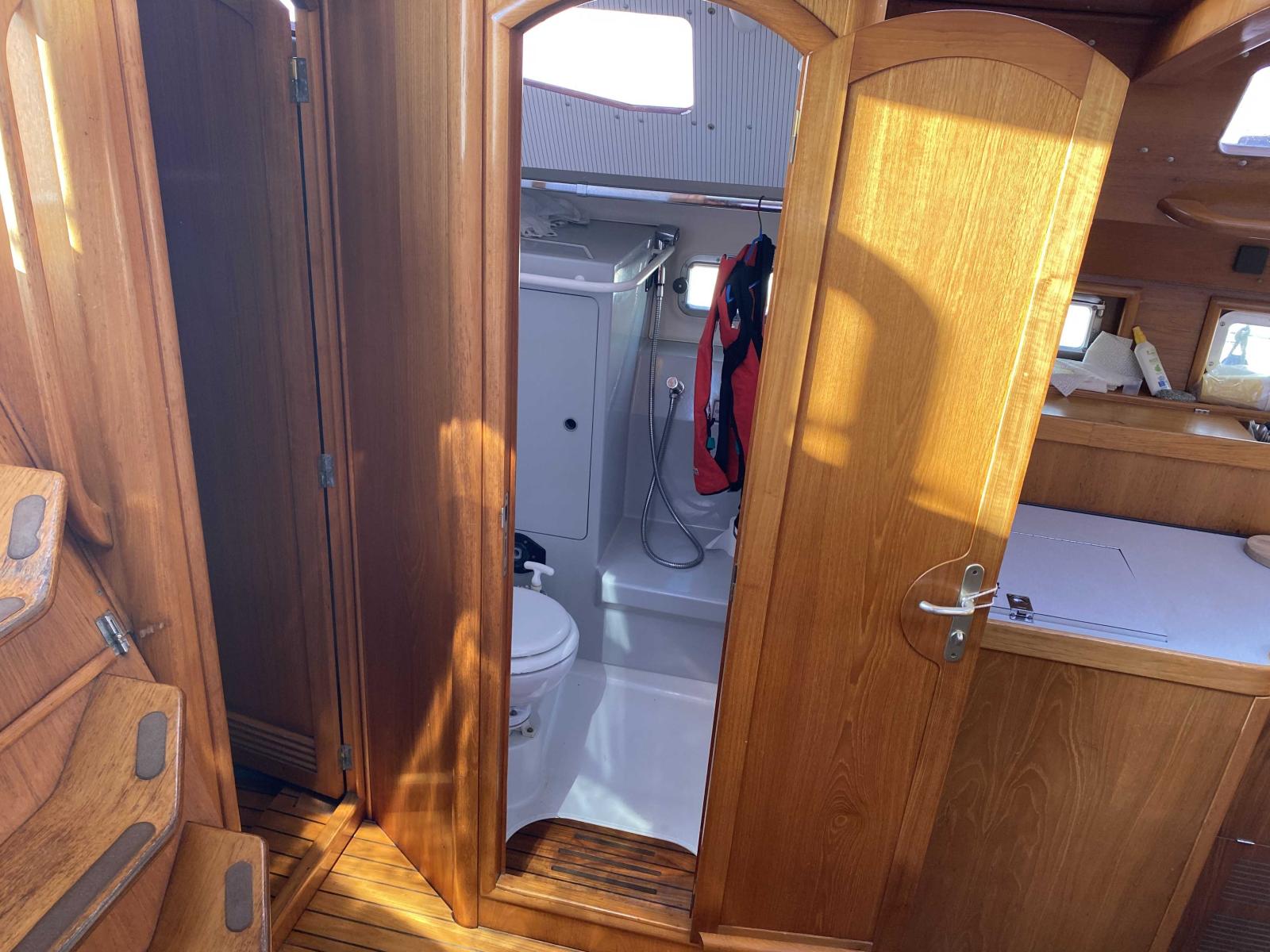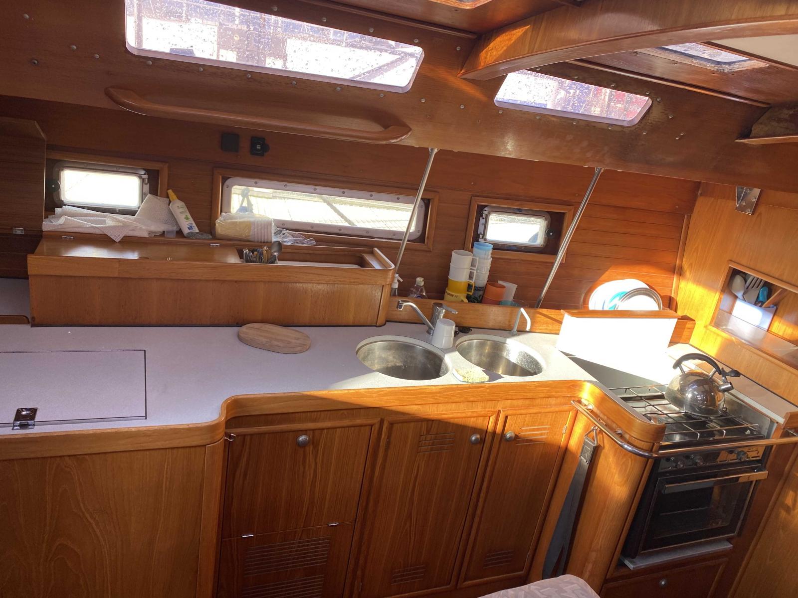 La pureté de lignes extérieures du Voyage 12.50 ne laisse pas deviner que ce voilier a été créé essentiellement suivant le concept du confort extrême. La coque du Voyage 12.50 prèsente des formes avant fines et tendues qui s'évasent doucement pour laisser place à la grande largeur génératrice des maxi volumes. En mer, le bateau trouve une double efficacité dans L'eau et un appui de carène sûr au creux de la vague. La quille caractéristique des Voyages y contribue par son faible coefficient de pénétration dans le fluide.