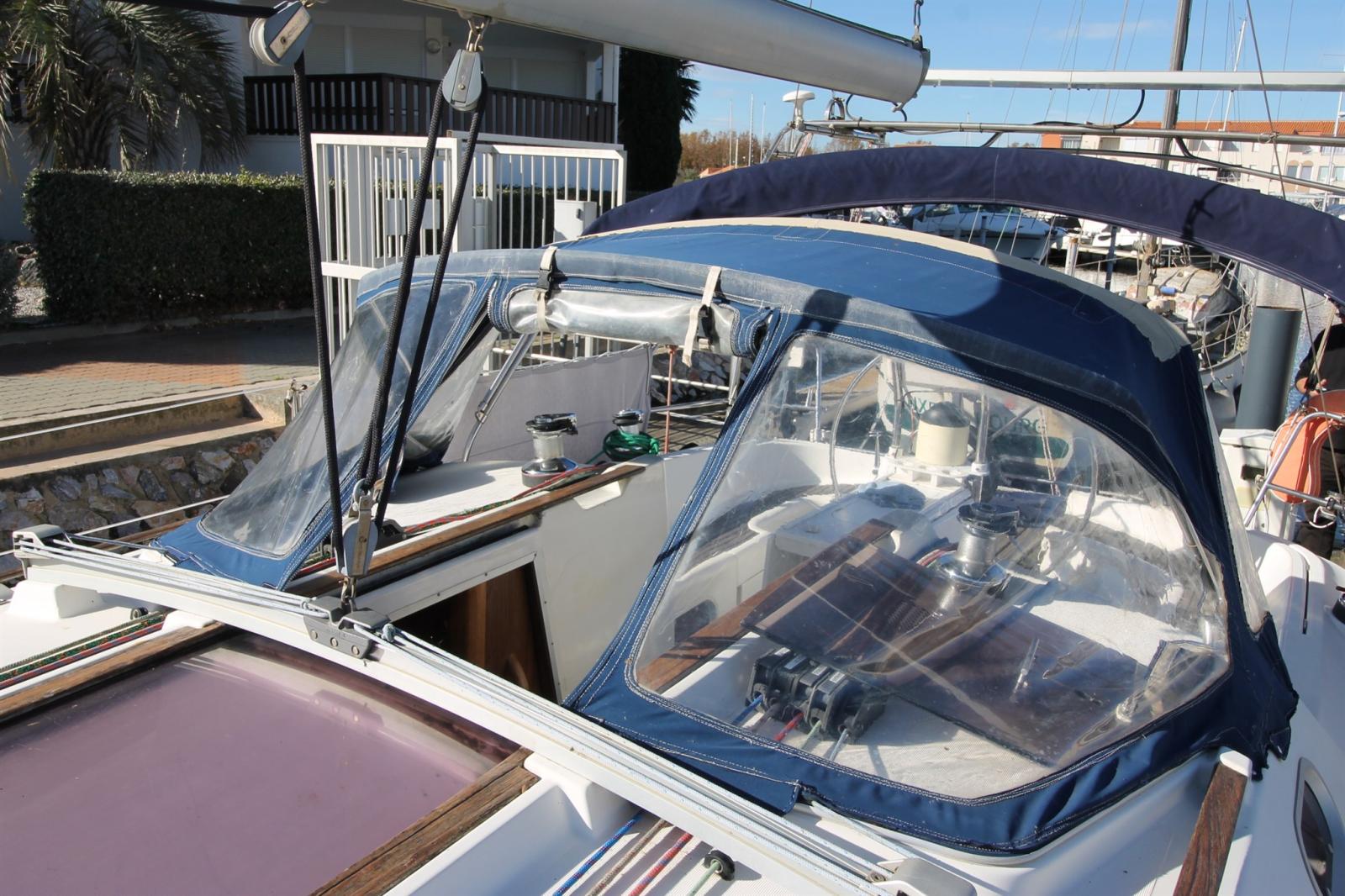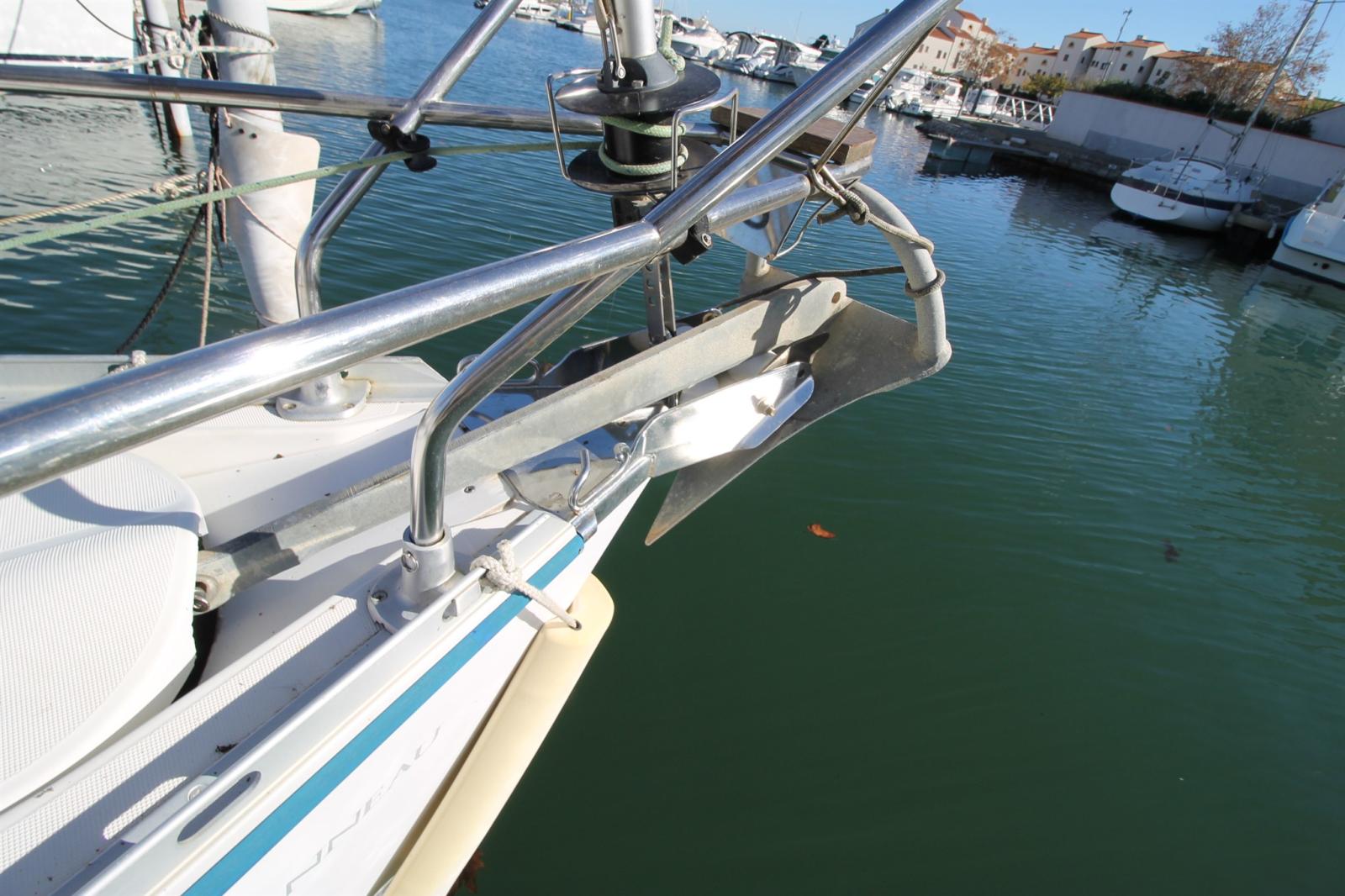 Ancre (ROCNA avec 30m de chaine en 10), Eau sous pression, 2 Batteries (x 100ah pour servitude de 2024), Câble d’alimentation à quai, Douche de cockpit, Bossoirs pour annexe (portique INOX), Moteur d'annexe (2,5cv 4t), 2 Panneau solaire (x100W avec régulateur MPPT neuf), Pompe de cale manuelle, Prise de quai, Guindeau électrique (1000w), Gréement monotoron (remplacé en 2025), Echelle de bain, Chaise support HB, table de cockpit, Annexe, 4 Winch (HARKEN).