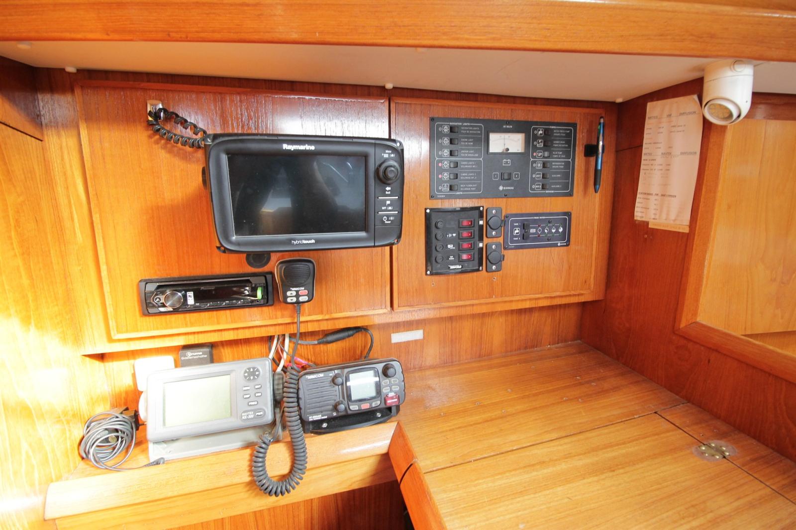 Loch (ST40 AUTOHELM), DSC VHF (RT550 Avec AIS en reception), Lecteur de cartes (RAYMARINE HYBRID TOUCH), Sondeur (ST40 AUTOHELM), Anémomètre/Girouette (ST40 AUTOHELM).