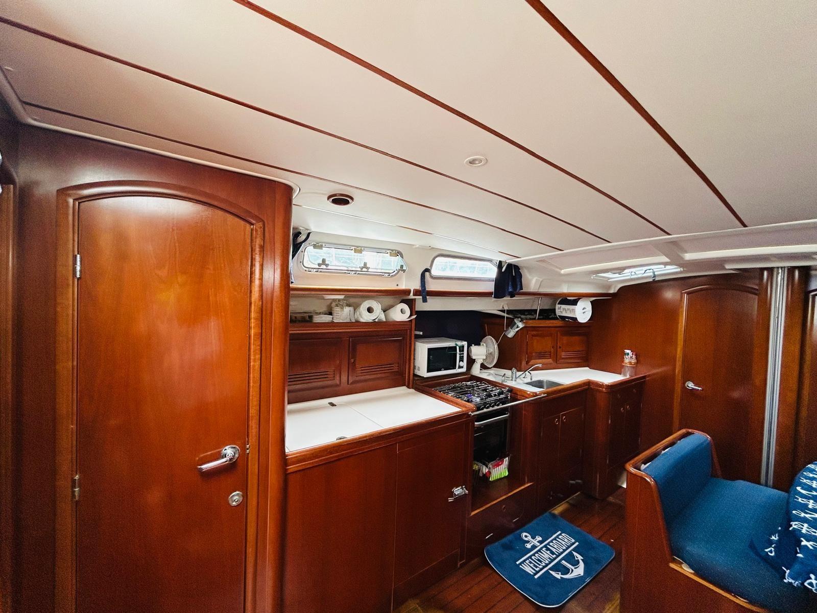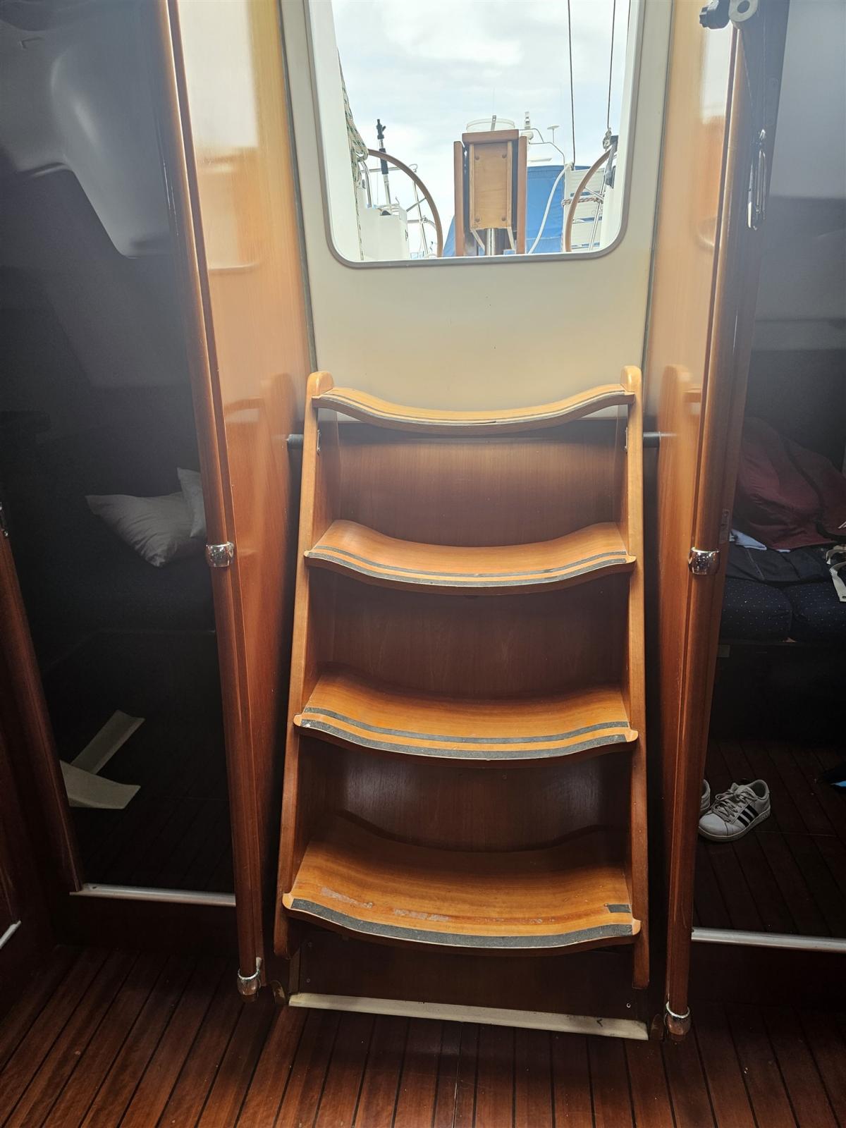 Intérieur en acajou rouge, tender Zodiac 3 mt encore chargé + Yamaha 5cv jamais utilisée, Team Music année 2025, électronique entièrement refaite Ray Marine année 2016, dernier bassin en cale sèche septembre 2024, chaudière, douche extérieure, enjambeurs de gouvernail en cuir refaits en 2020