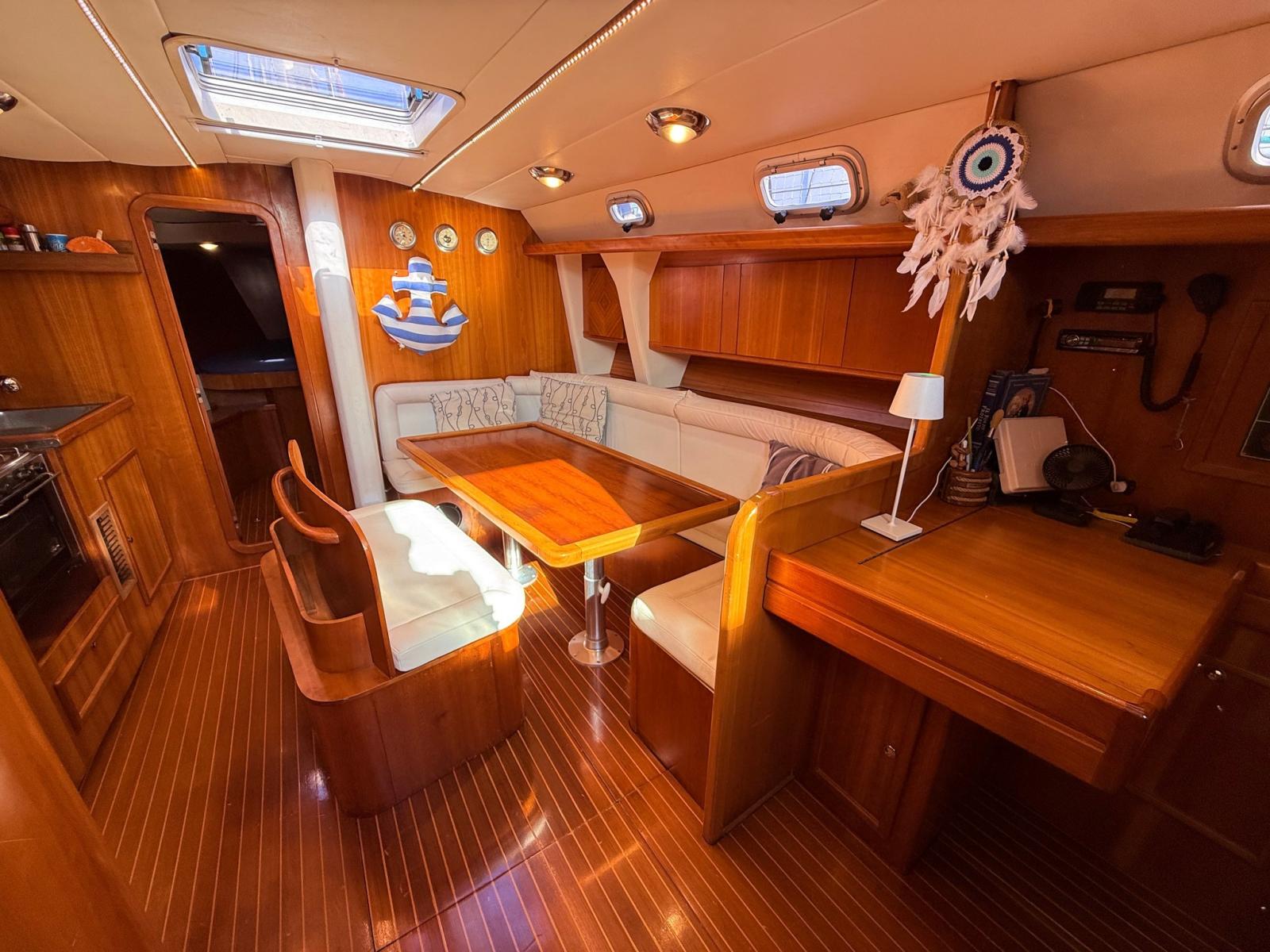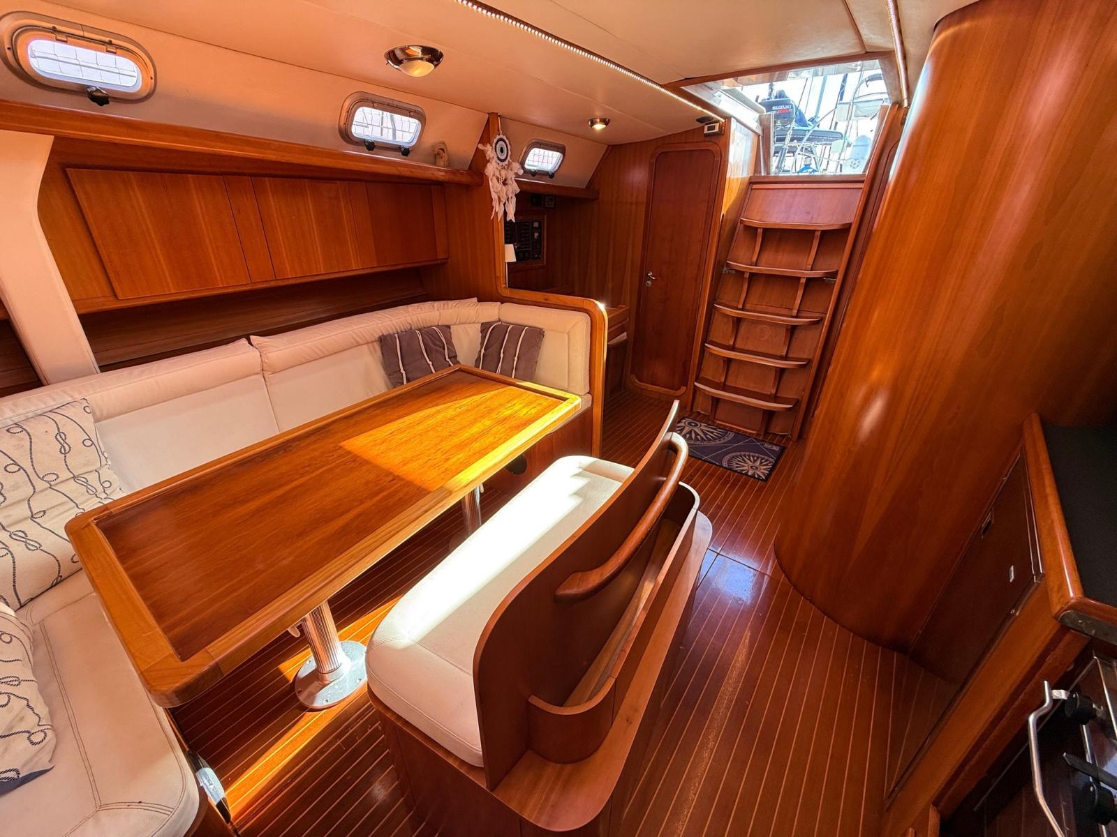 Construite en Italie en 2005, ses conduites de flottaison dérivent du célèbre projet allemand Frers – Grand Soleil 45, une garantie d’équilibre entre performance, sécurité et navigabilité même dans les conditions les plus exigeantes.