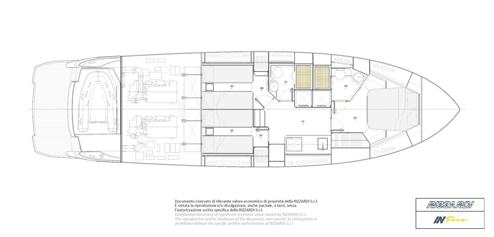 Alarme moteur, Alarme de pompe de cale, Alternateur, Ouverture du compartiment moteur électrique, Eau sous pression, Passavant en teck, Couleur spéciale, Douche de cockpit, Phare de poursuite, Flaps hydrauliques, Garage à annexe, Hard top, Extincteur(s) fixe(s), Indicateurs de flaps, Lavage de chaine, Lavabo dans le cockpit, Éclairage de courtoisie, Spots sous-marins, Moniteur de batterie, Défenses, Passerelle, Plateforme arrière, Pompe de cale automatique, Pompe de cale manuelle, Pompe de Lavage du Pont, Cockpit en teck, Prise de quai, Connexion eau sous pression à quai, Rollbar, Guindeau électrique, Echelle de bain, Système de filtration des eaux usées, table de cockpit, Table pliante de salon, Corne, Winch, Winch électrique arrière, Winch électrique avant.