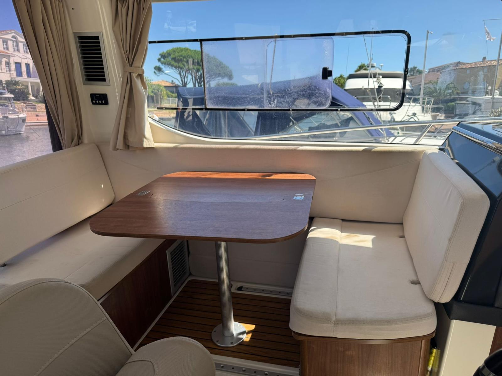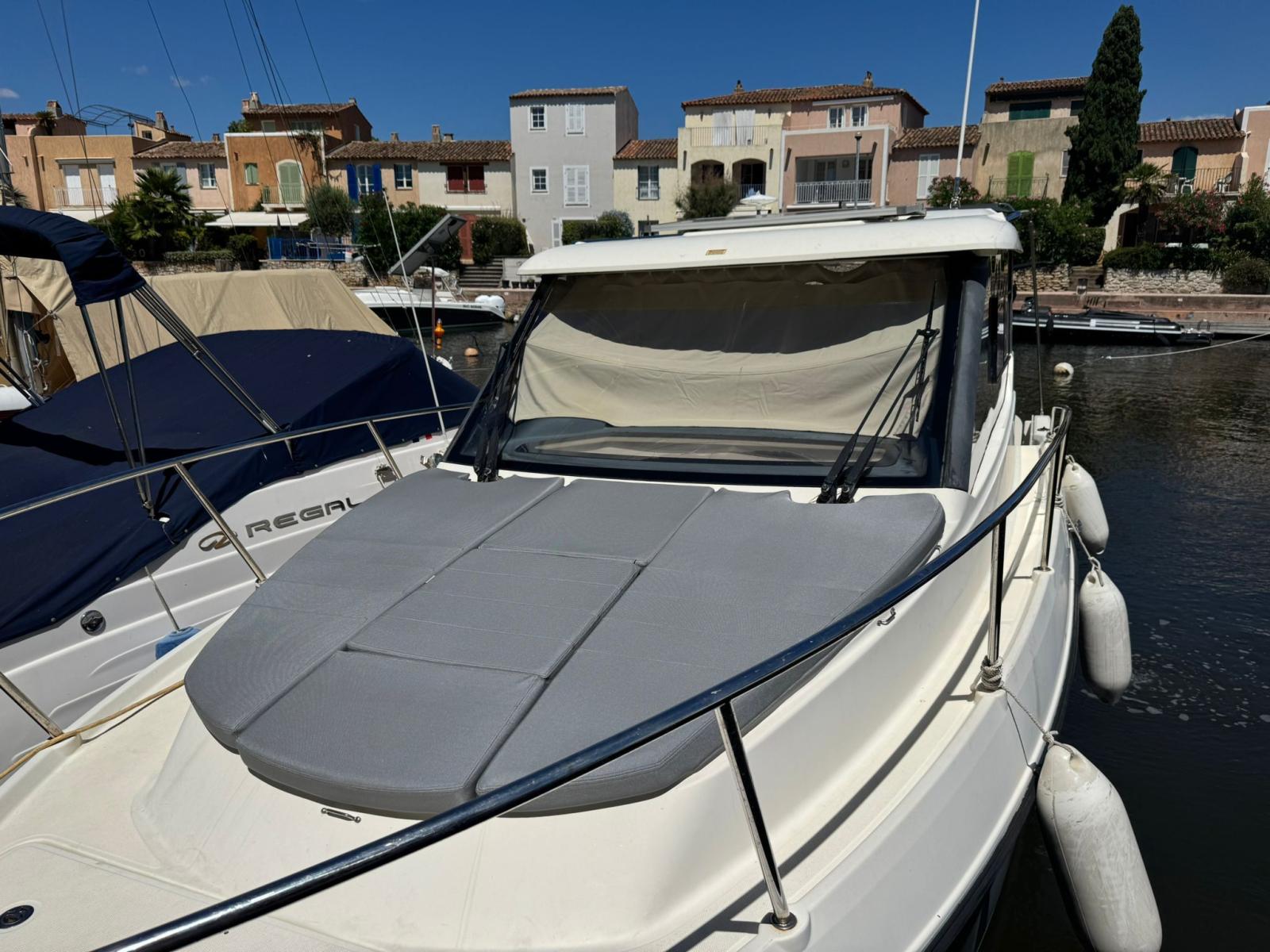 Motorisé par 2 Mercury F150 Verado 150 ch (350 h), révisés en juillet 2025, il assure une navigation fiable et agréable. Le propulseur d’étrave et les flaps neufs facilitent les manœuvres. Atout rare : possibilité de reprendre la place au Port Cogolin, payée jusqu’en mars 2026.