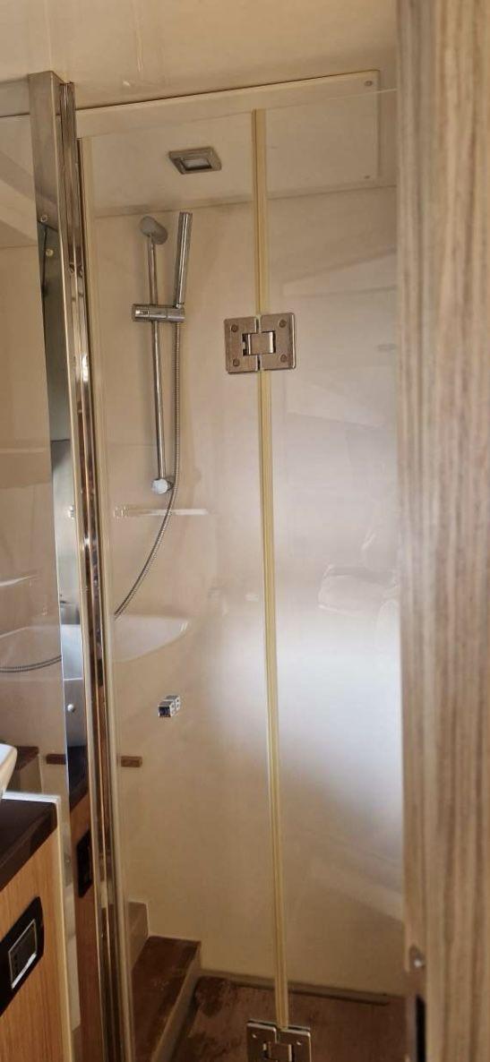 Le bateau offre un confort optimal : climatisation, cuisine intérieure, 2 frigos, plancha extérieure, toit ouvrant électrique, annexe gonflable et armement complet catégorie B. Les réservoirs contiennent 910 L de carburant et 286 L d’eau douce, avec 110 L pour les eaux usées.
