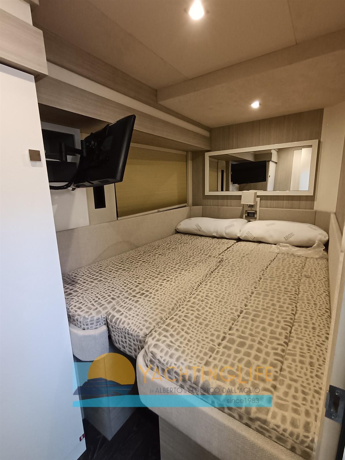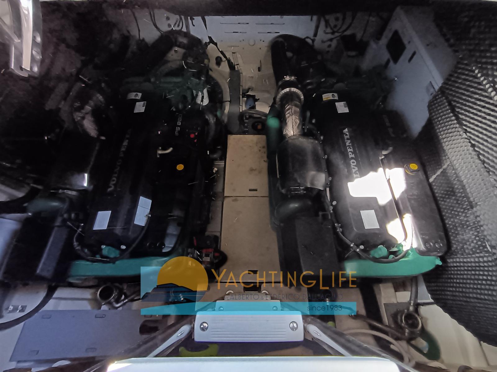 Alarme moteur, Alarme de pompe de cale, Eau sous pression, Passavant en teck, Couleur spéciale, Douche de cockpit, Flaps électriques, Hard top, Extincteur(s) fixe(s), Indicateurs de flaps, Lavabo dans le cockpit, Éclairage de courtoisie, Spots sous-marins, Passerelle (idraulica), Plateforme arrière (idraulica), Pompe de cale automatique, Porte latérale, Cockpit en teck, Prise de quai, Guindeau électrique, Echelle de bain, table de cockpit, Corne, Winch électrique arrière.