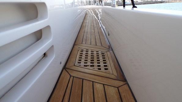Grue. La plate-forme, le cockpit et les allées ont un sol en teck. Le cockpit dispose d’une table à manger