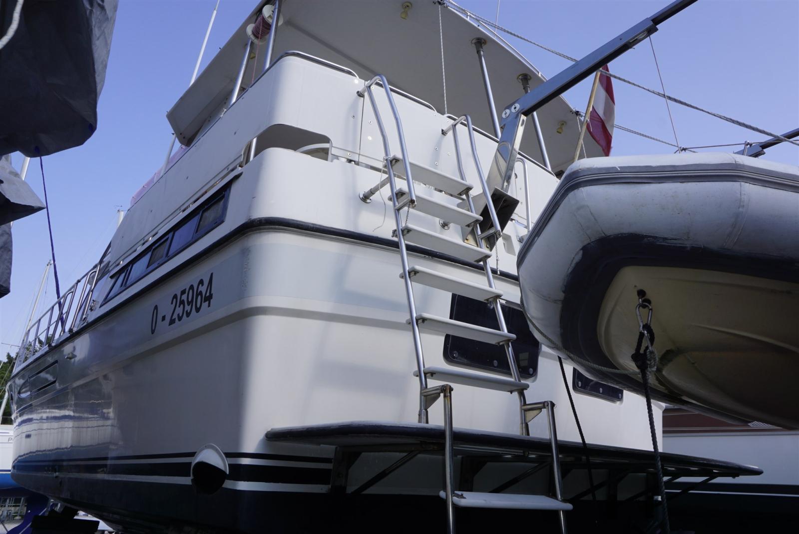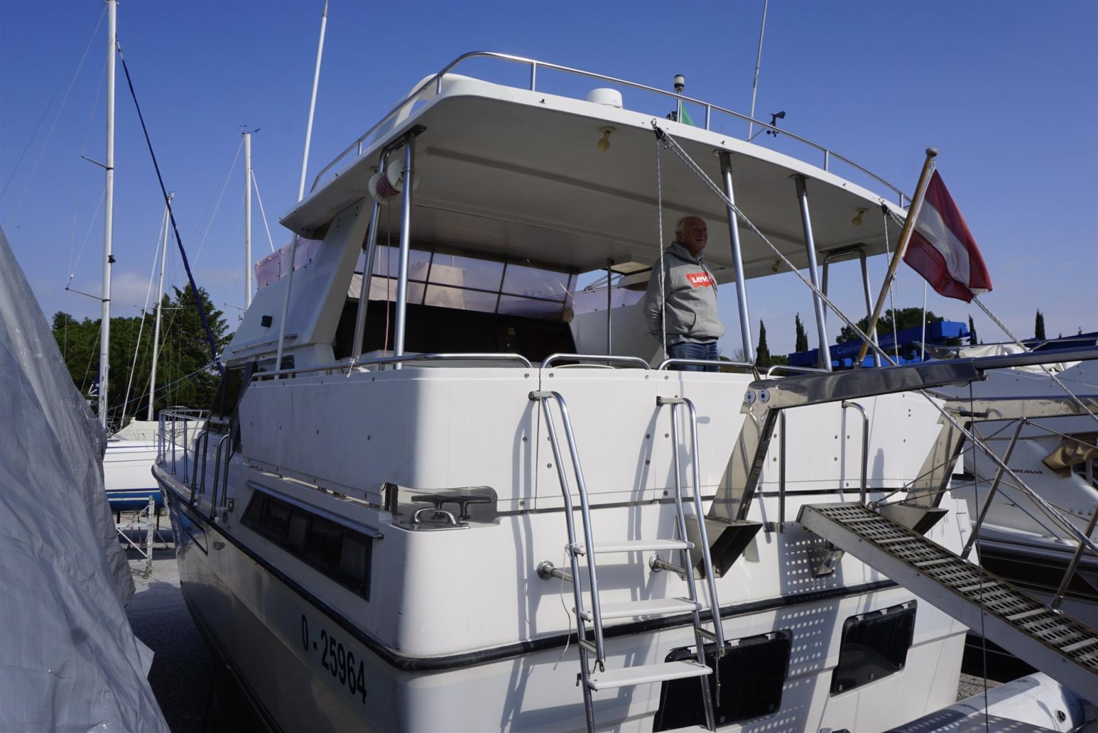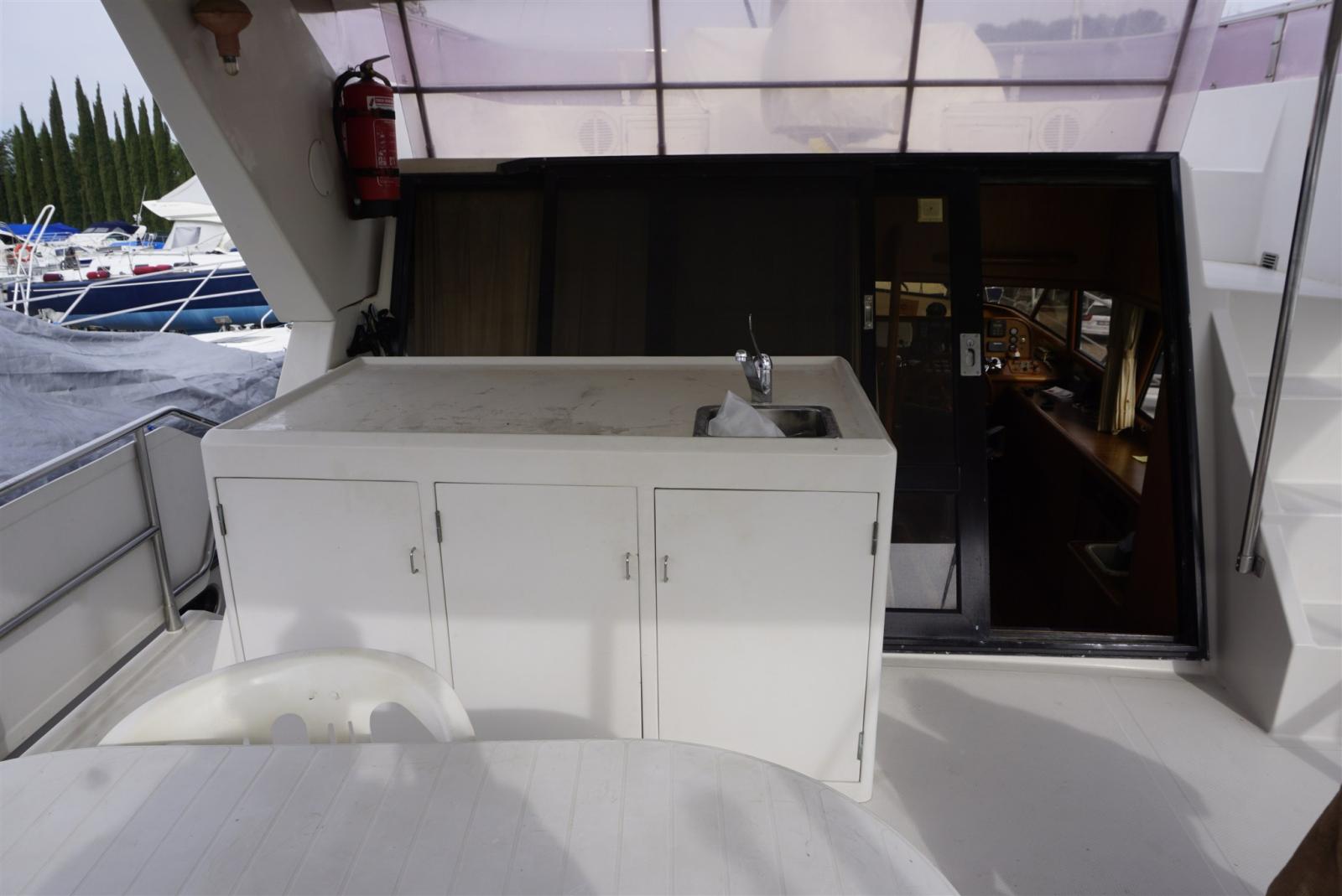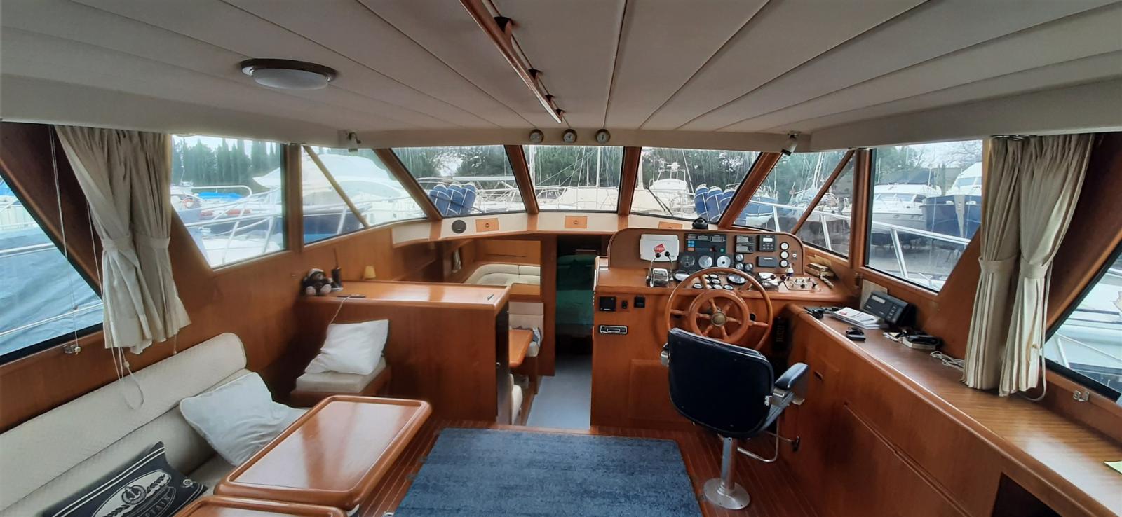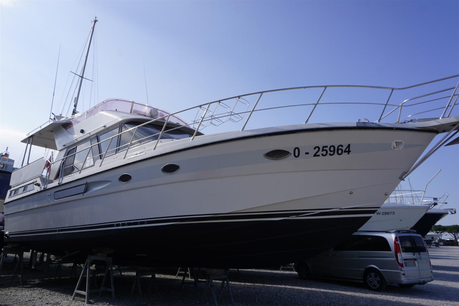 Alarme moteur, Ancre (INOX), Eau sous pression, Douche de cockpit, Flaps hydrauliques, Bossoirs, Hard top, Indicateurs de flaps, Lavabo dans le cockpit, Moteur d'annexe (Mercury 25 hp), Défenses, Passerelle, Plateforme arrière, Pompe de cale automatique, Pompe de cale manuelle, Porte latérale, Prise de quai, Rollbar, Guindeau électrique, Echelle de bain, table de cockpit, Table pliante de salon, Annexe, Filières avec sortie latèrale, Corne.