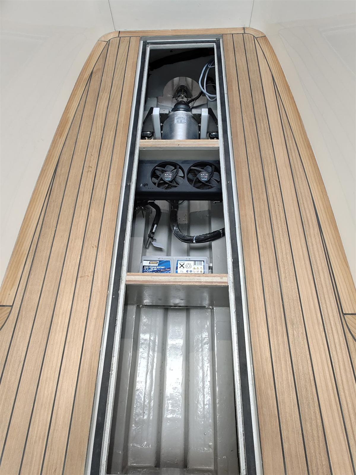 Le bateau est équipé d’un système de propulsion électrique de Fischer Panda et dispose de deux batteries 25,6V avec un chargeur rapide.