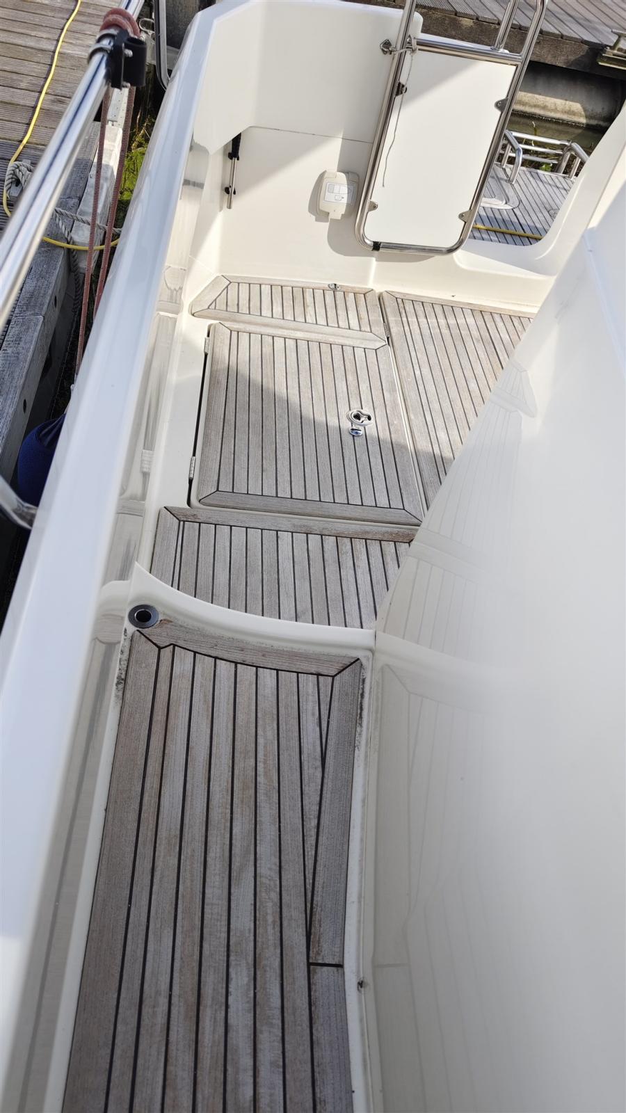 Ancre (Edelstahl, 10m Edelstahlkette & 30m Leine), Passavant en teck, Phare de poursuite (fernbedienbar), Flaps hydrauliques, Prise de quai (220V), Guindeau électrique.