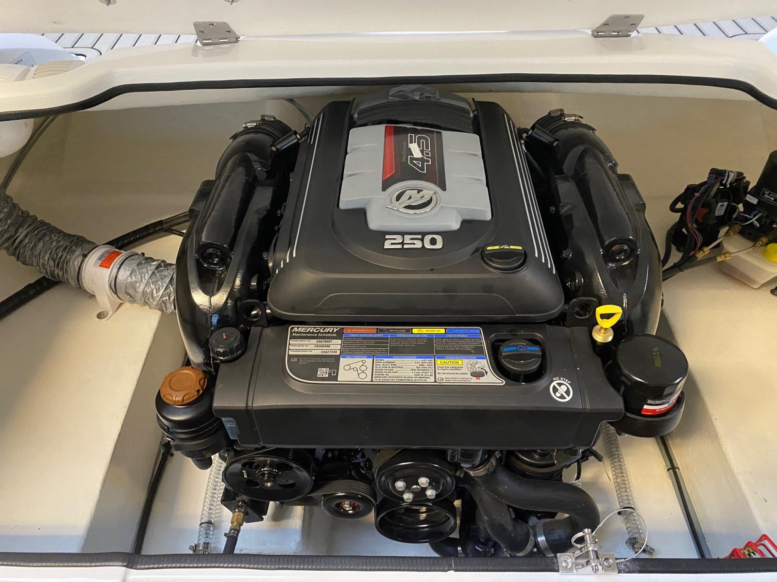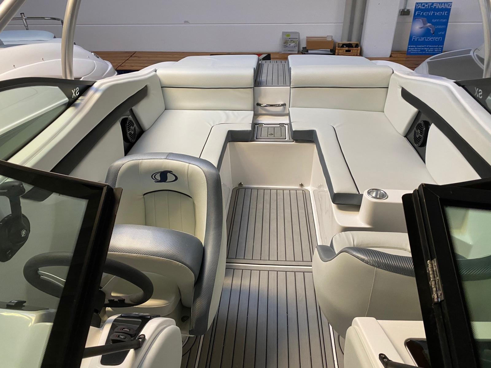 Sensation SXI avec un moteur inboard Mercruiser de 350 ch et la remorque Vanclaes assortie.