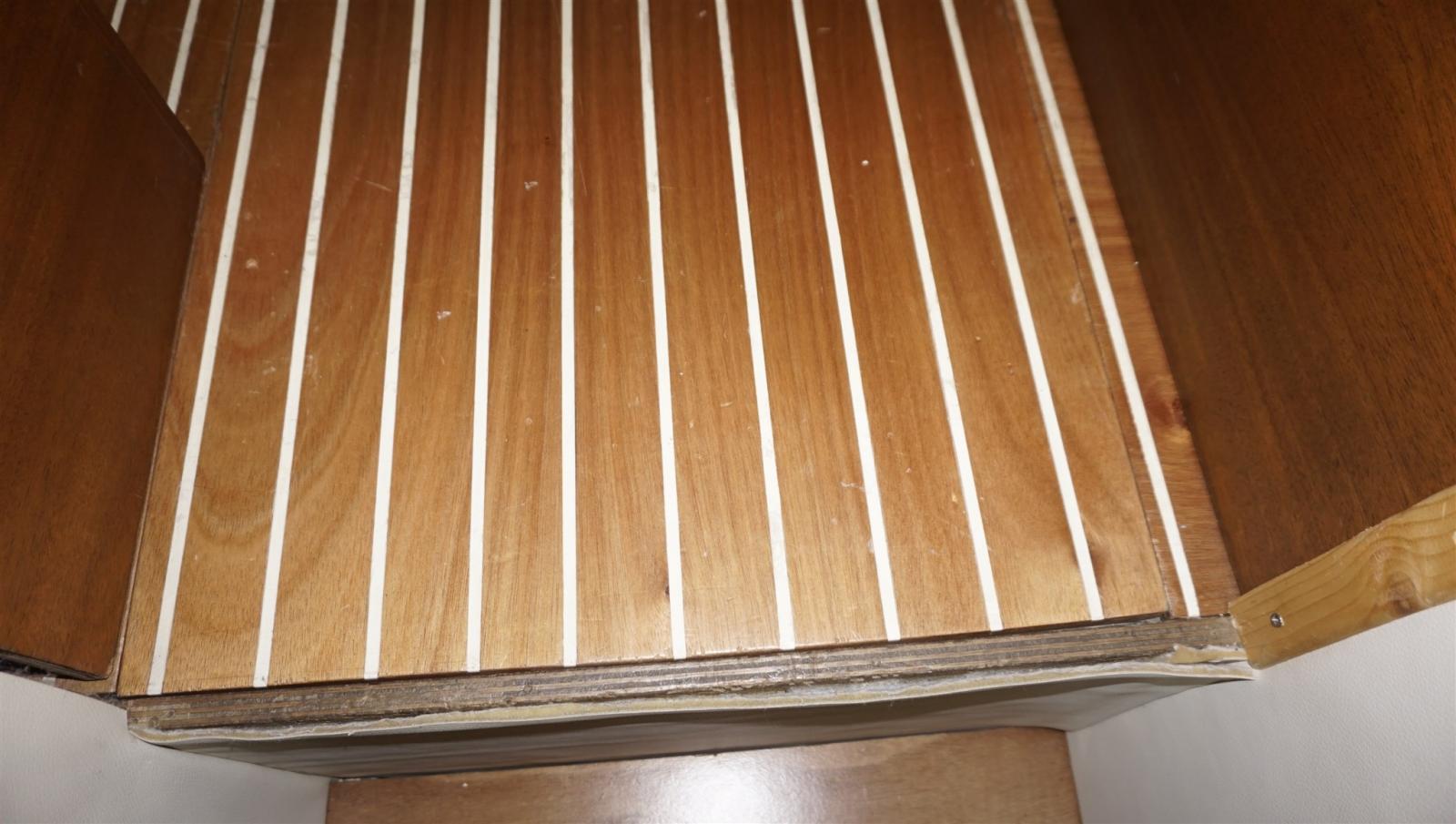 − restauration complète du mobilier intérieur en bois + 2 nouveaux éléments hauts en bois + nouvelle table intérieure pliante ;