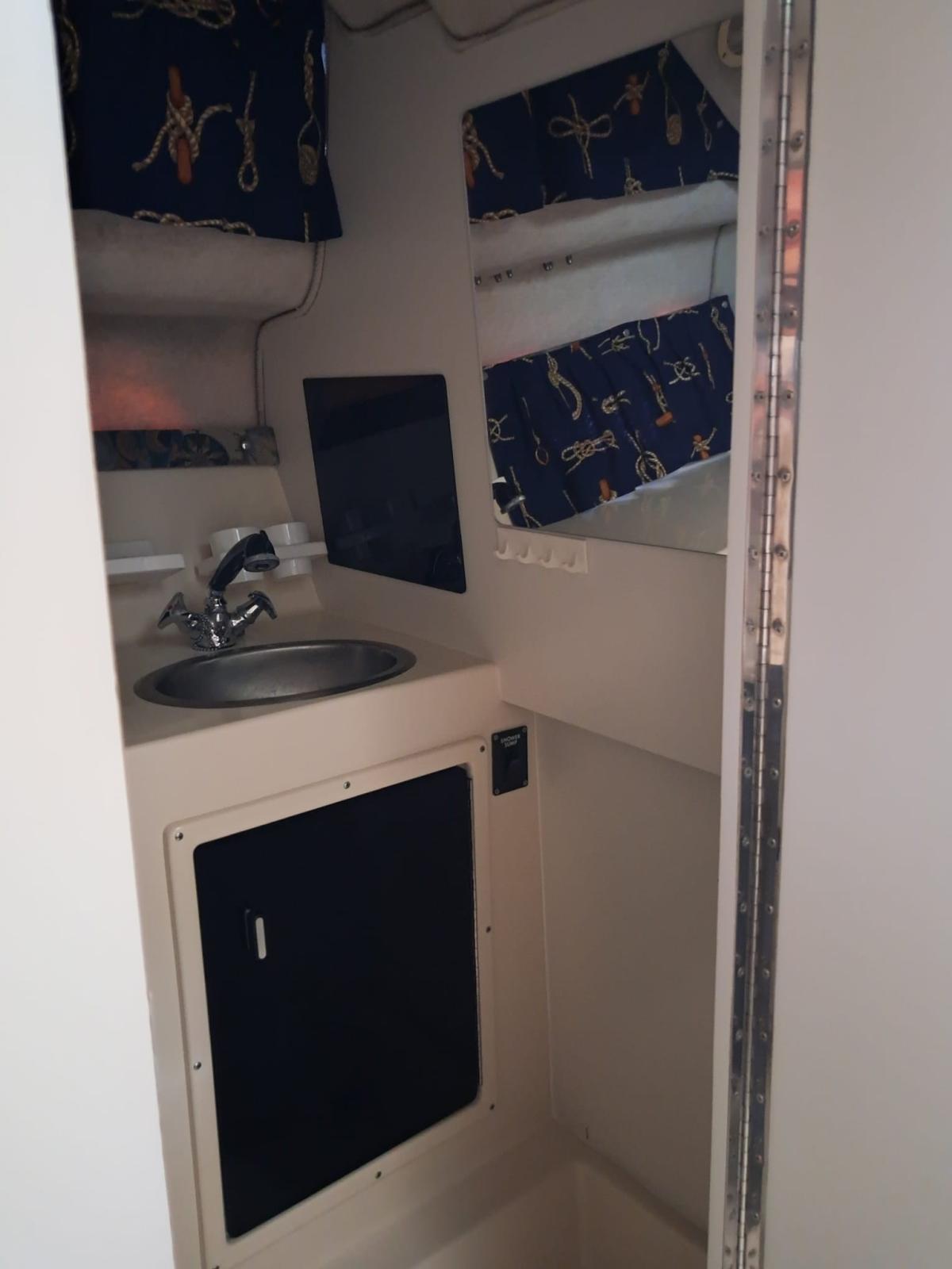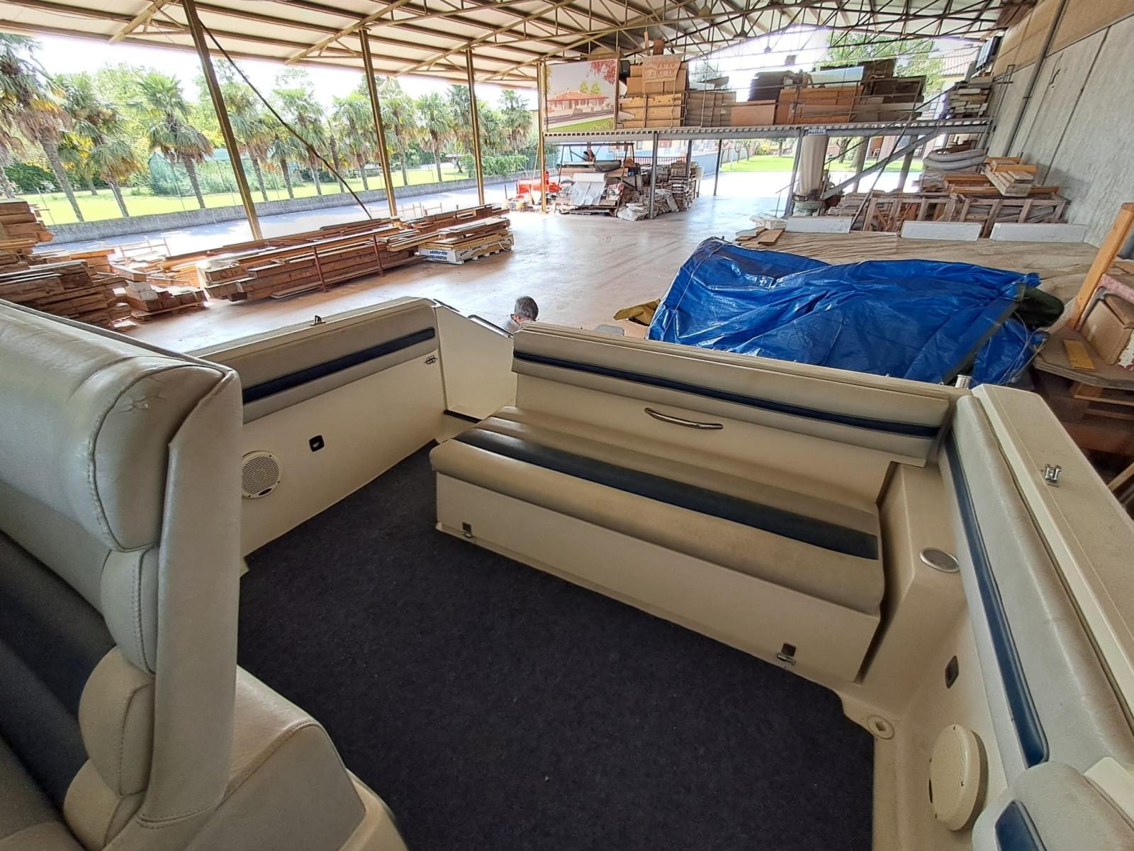 Alarme moteur, Eau sous pression, Douche de cockpit, Flaps électriques, Pompe de cale automatique, Pompe de cale manuelle, Prise de quai, Echelle de bain, table de cockpit, Table pliante de salon, Corne.