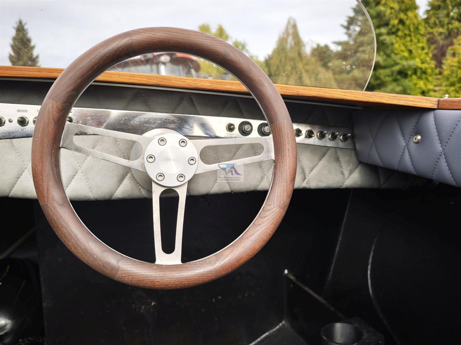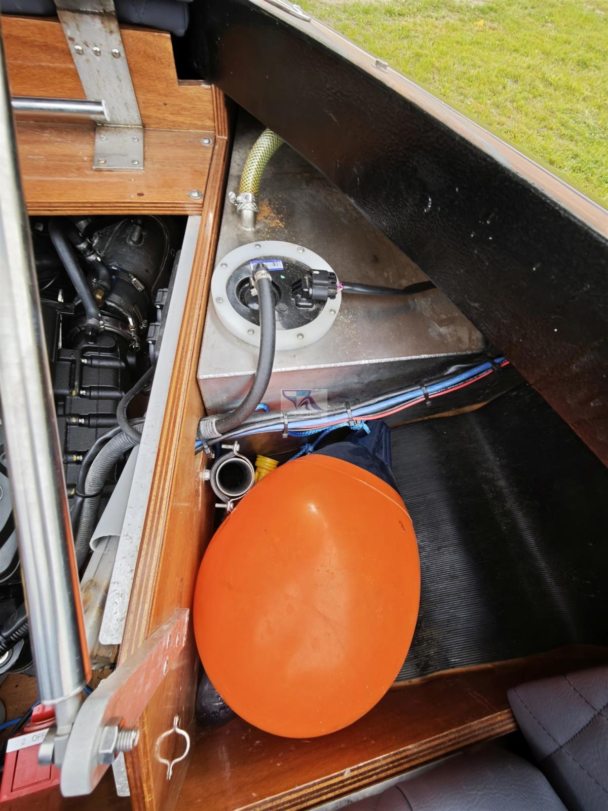 Trim hydraulique, 2 Batteries (2 x 60 AH), Câble d’alimentation à quai, Pont en teck, Prise de quai.