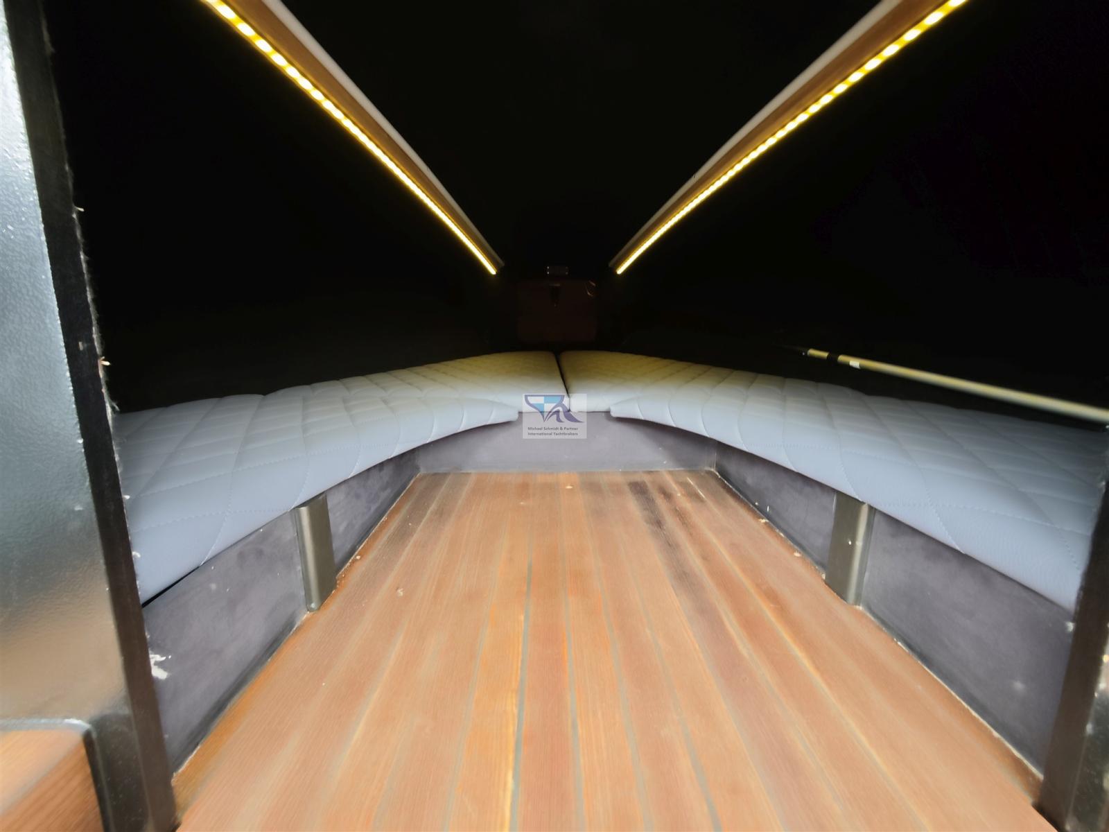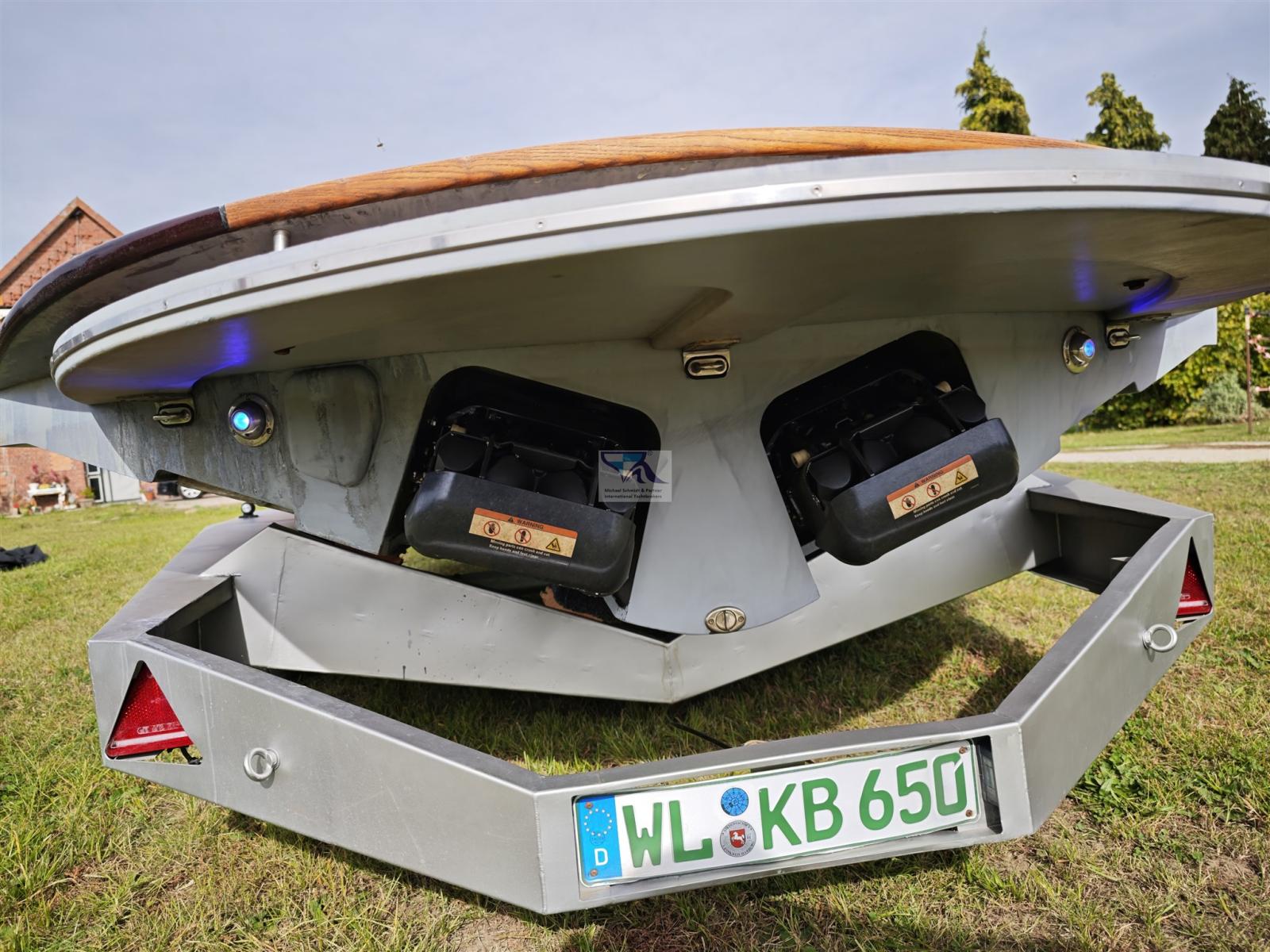 Un bijou unique avec une garantie accrocheuse ! 2 moteurs à réaction de 277 ch avec seulement 0,40 m de tirant d’eau ! Complet avec remorque en acier inoxydable ! Intérieur en cuir spécial de haute qualité comme neuf à partir de 2023 !