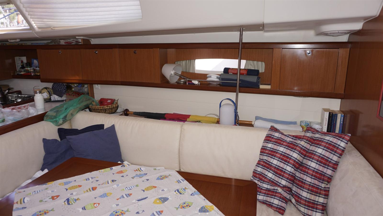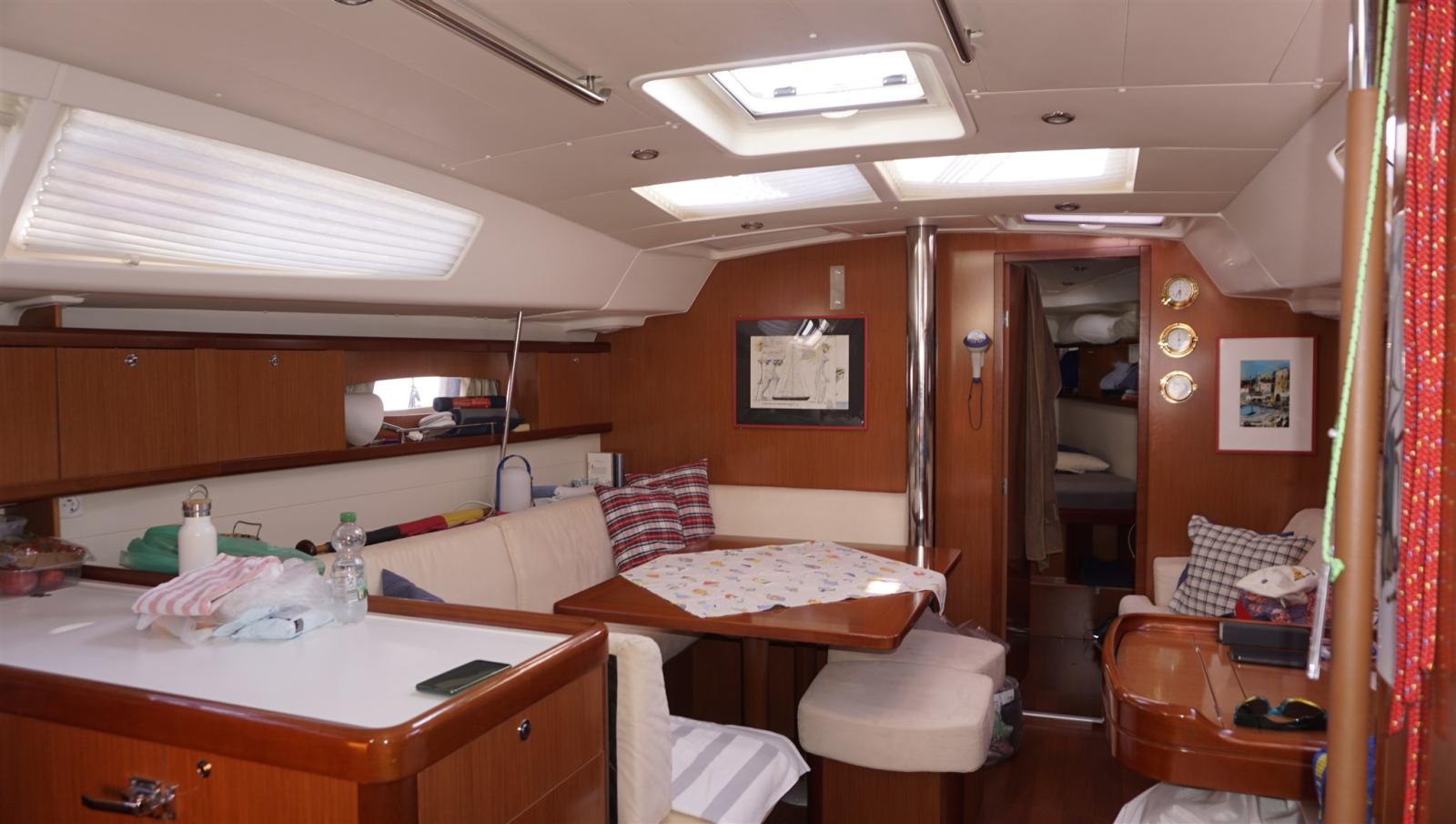 Alarme moteur, Ancre (ROCNA 25 kg + 75 m 10 mm chain INOX + WASI Powerball swivel), Eau sous pression, Batteries (06/2024 AGM), Chargeur de batterie (2 x 40A), Douche de cockpit (h/c), Double barre à roue, Propulseur d'étrave (MAXPOWER CT100 6 blade props), Éclairage de courtoisie, Panneau solaire, Passerelle, Pompe de cale automatique, Pompe de cale manuelle, Cockpit en teck, Prise de quai, Guindeau électrique, Echelle de bain, table de cockpit, Filières avec sortie latèrale, Corne, Winch, Windex.