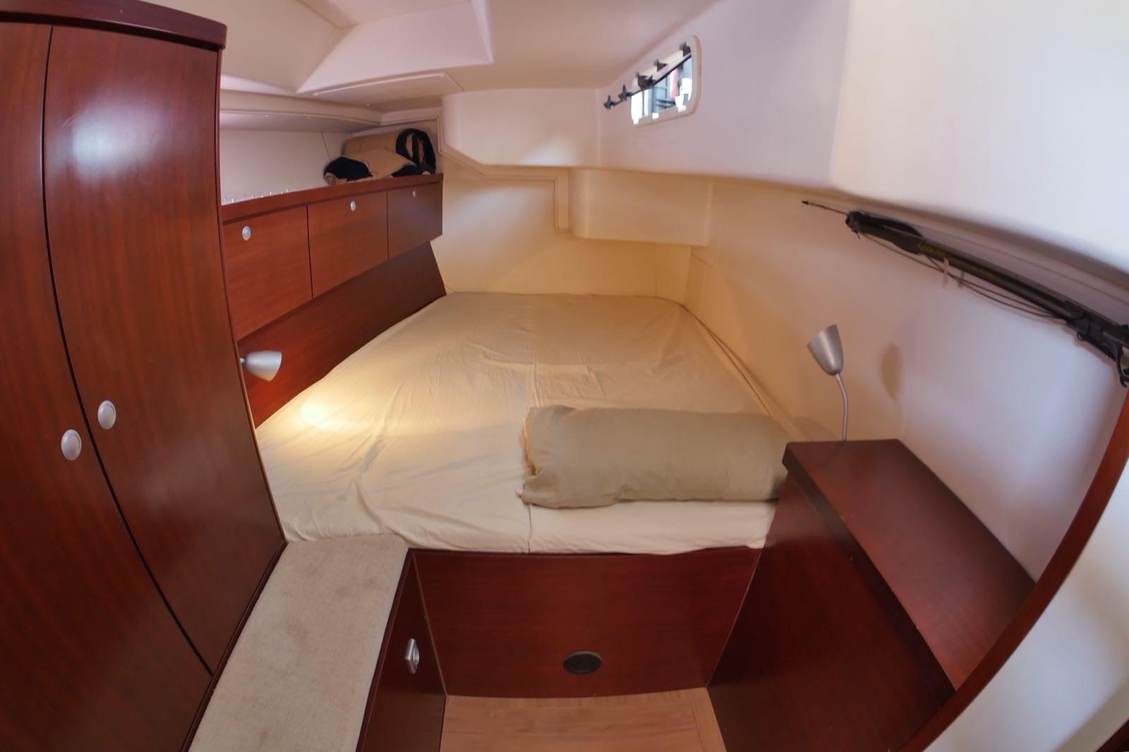 Chaque année l’antifouling était refait ; Le teck est en très bon état, le teck miracle a été appliqué deux fois par an ; installation d’un réservoir d’eau supplémentaire de 280 litres pour un total de 700 litres ; préparation de la tempête ; changé les pompes des deux toilettes ; de nombreux sommets, sont nouveaux ; Silentbloc moteur remplacé