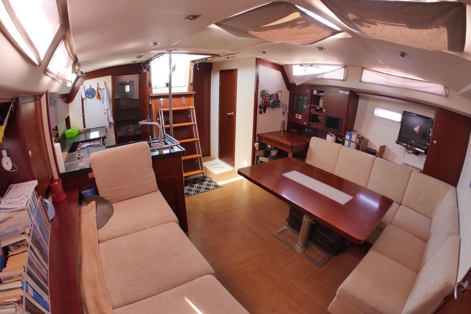 Ancre (+ 80 m stainless steel chain), Eau sous pression, Douche de cockpit, Double barre à roue, Moteur d'annexe (HONDA 2,3 hp), Panneau solaire (SOLVAR), Passerelle, Pompe de cale manuelle, Prise de quai, Guindeau électrique (1.500 WATT), table de cockpit, Filières avec sortie latèrale.
