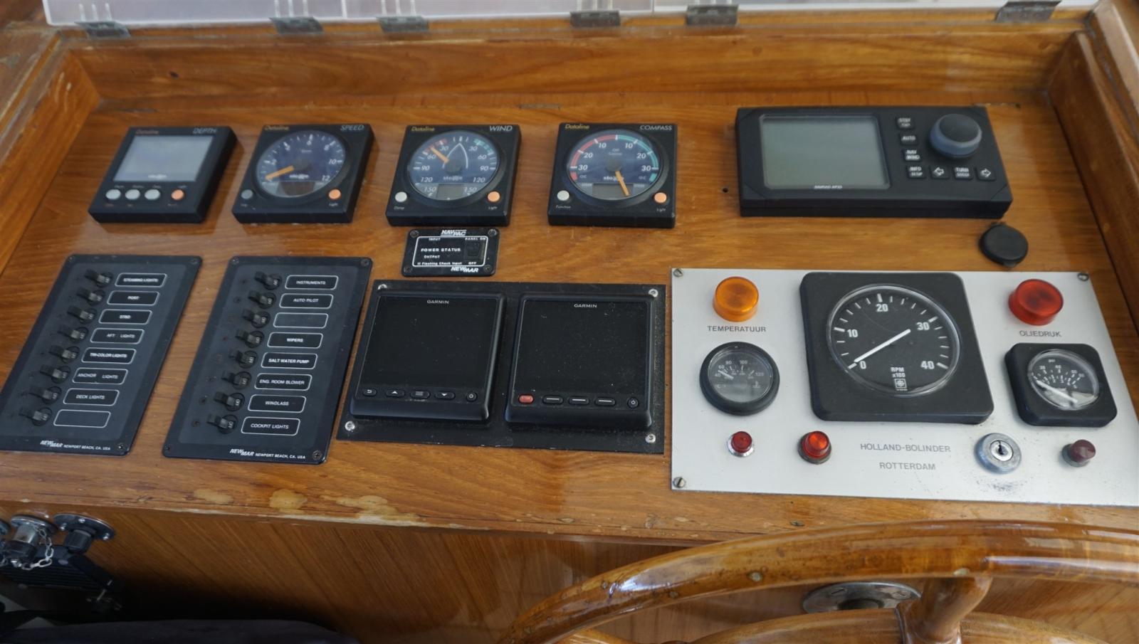 AIS, Indicateur d'angle de barre (GARMIN), Antenne radar (GARMIN), Loch (GARMIN), DSC VHF (GARMIN), Sondeur pêche (GARMIN), GPS (GARMIN), Loch (GARMIN), Pilote automatique (GARMIN), Lecteur de cartes (GARMIN), Radar (GARMIN), Anémomètre/Girouette (GARMIN).