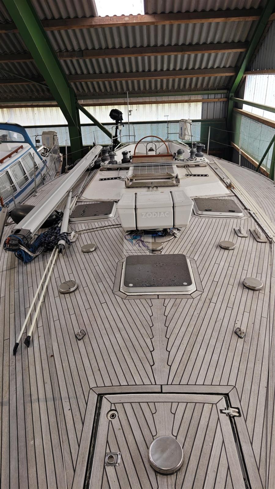 Eau sous pression, 2 Batteries (á 200kW), Système de vidange, Passavant en teck, remorque, Pompe de cale automatique, Cockpit en teck, Echelle de bain, Chaise support HB, Annexe, Corne, Windex.