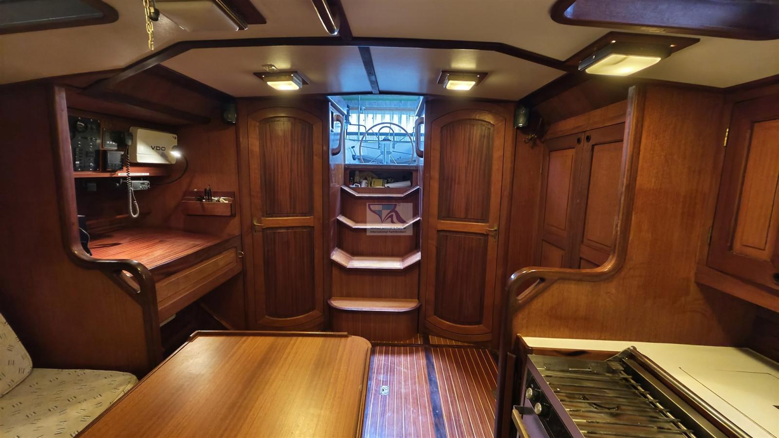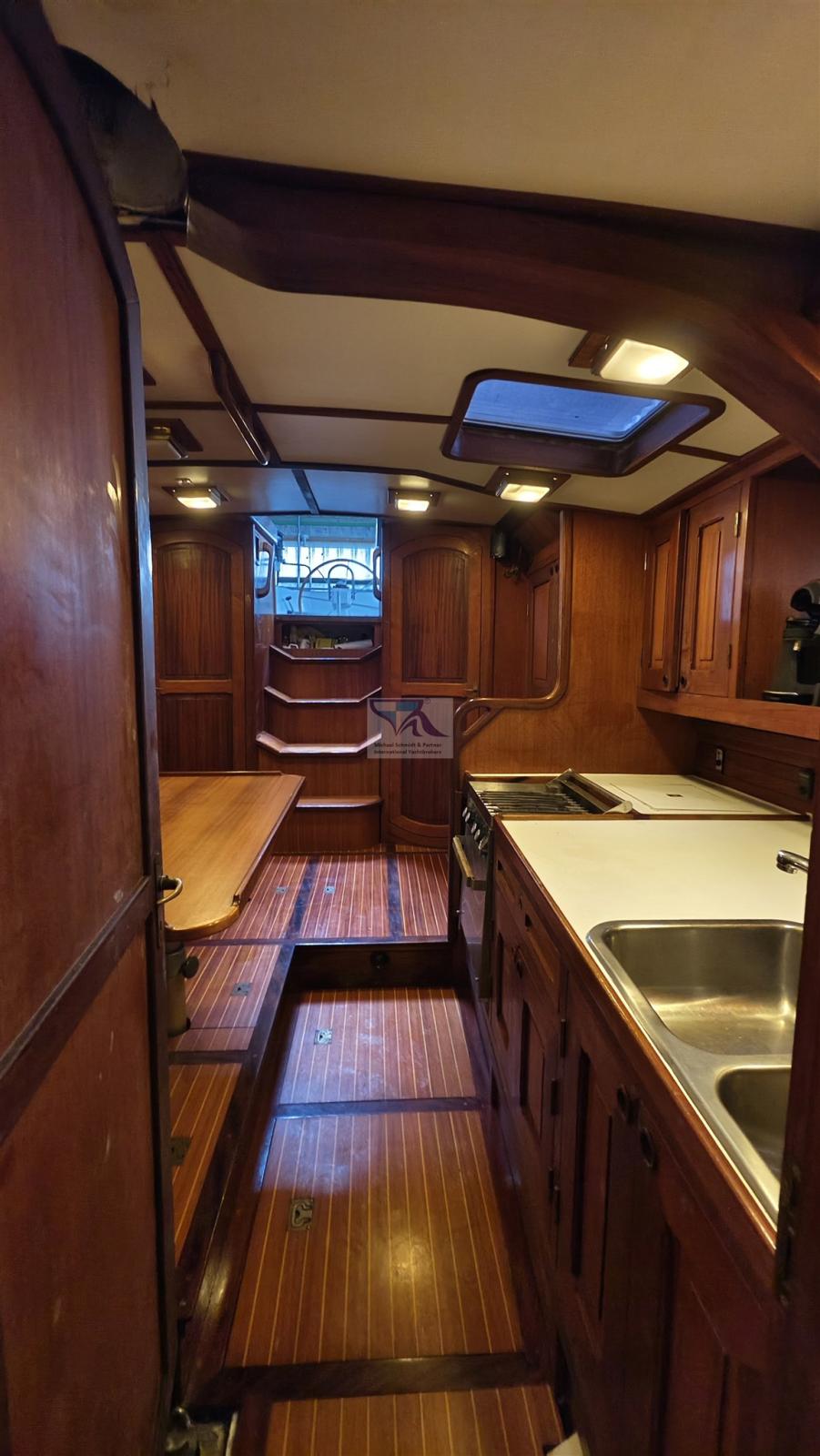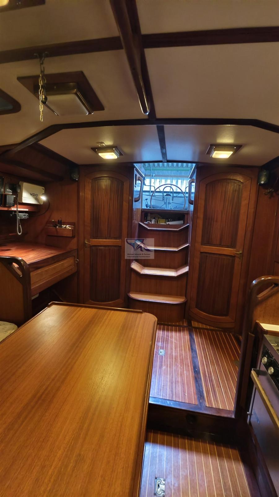Le légendaire one-tonner en aluminium Feltz : Kühnezug Goldkatze 41 a été transformé en un yacht de croisière élégant à l’intérieur en 1992. À l’extérieur, l’aspect d’un yacht de course a été conservé, tout comme le gréement, de sorte que les caractéristiques de navigation sont toujours impressionnantes.