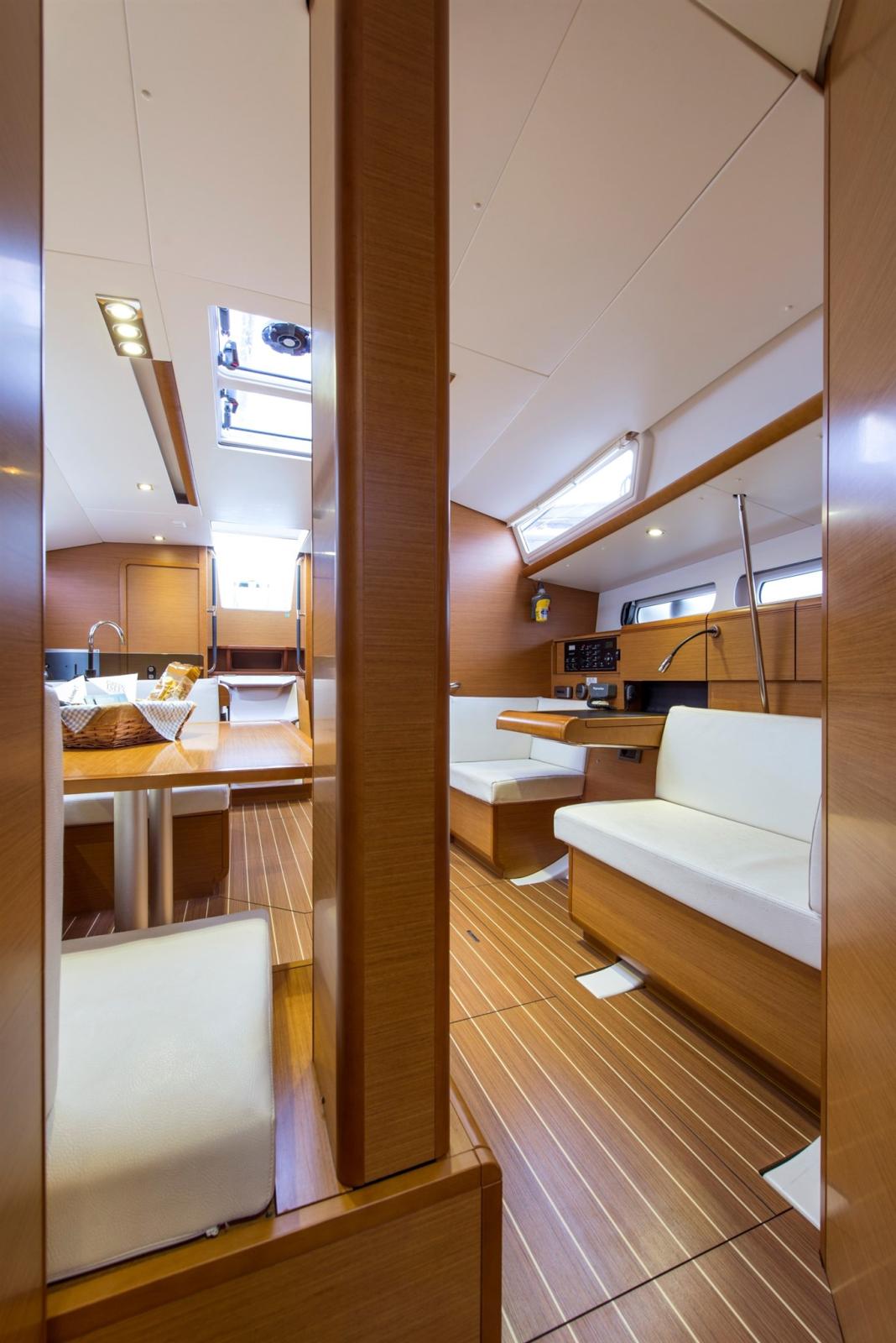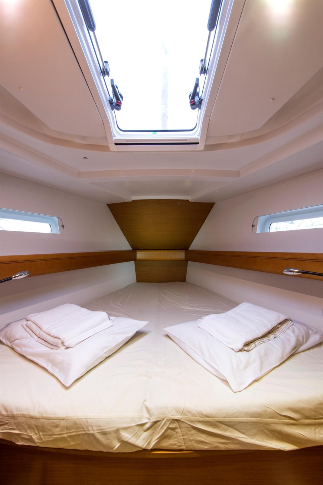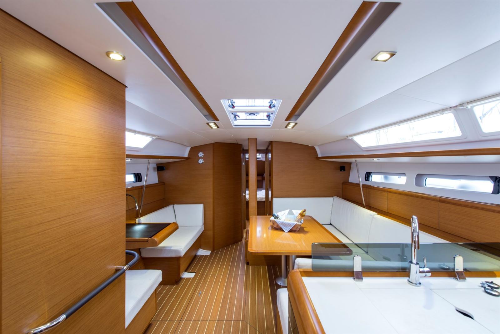 Avec ses lignes dynamiques, ses nombreuses fenêtres et sa lumière, ce Sun Odyssey 439 conçu par Philippe Briand est un voilier rapide et marin. Il dispose de 4 cabines pour 8 personnes et de 2 WC électriques/douche. Propulsé par un Yanmar 54CV et équipé d’un génois sur enrouleur et d’une grand-voile sur enrouleur, tous deux en excellent état et datant de 2019. C’est un voilier très bien entretenu.