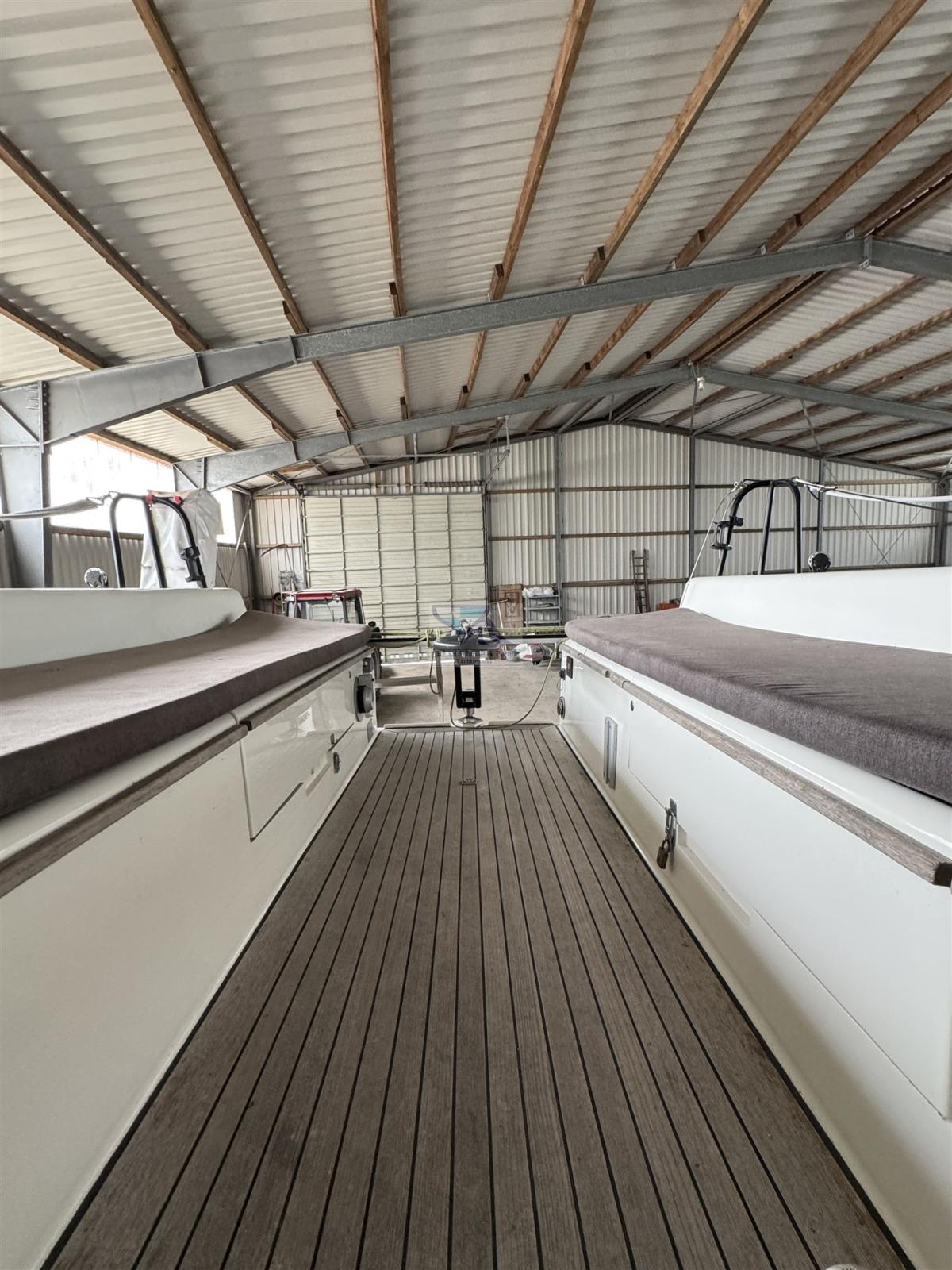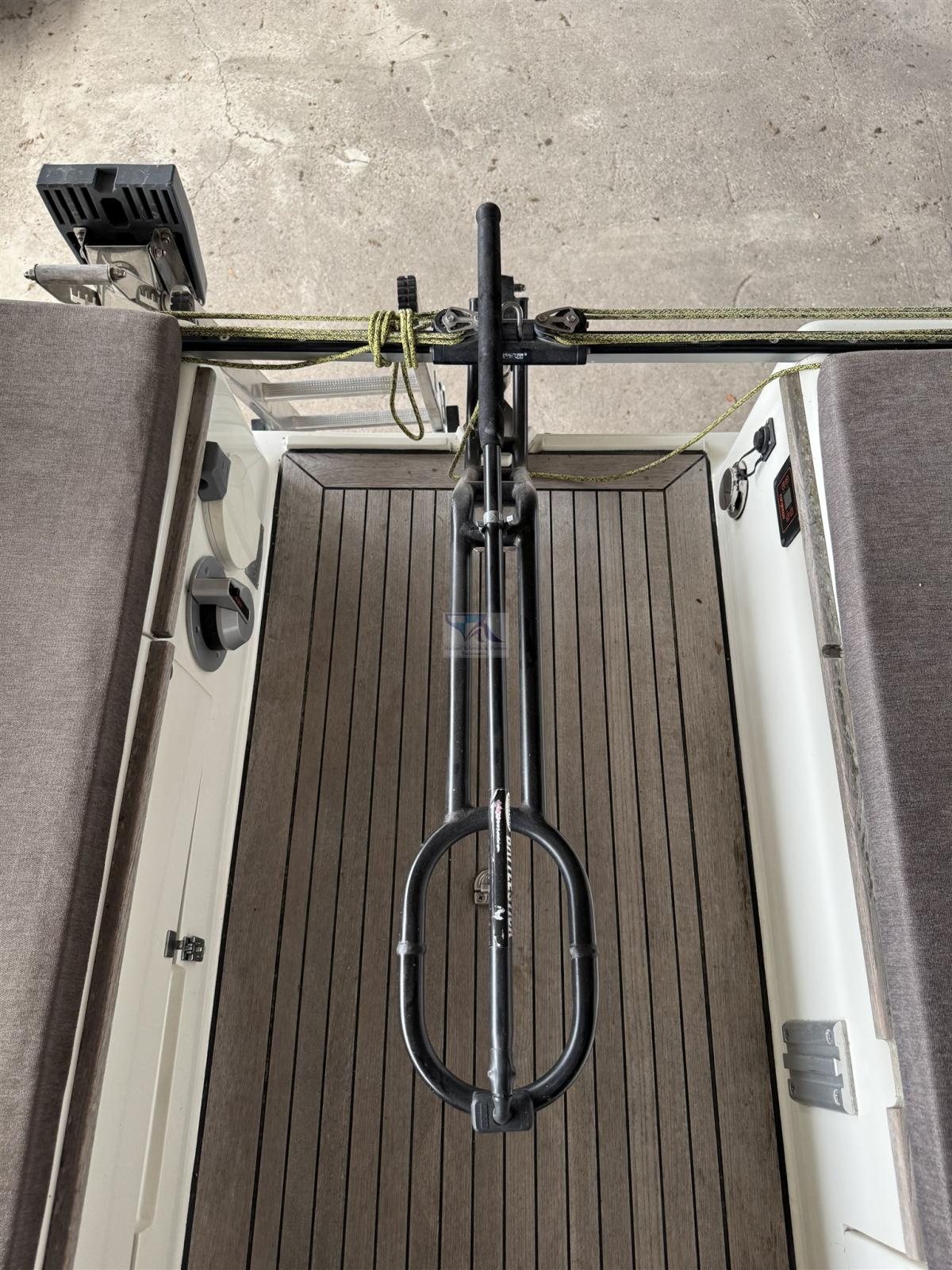 2 Batteries (Tporqueedo und Liontron), Chargeur de batterie (Torqueedo und Victron), Éclairage de courtoisie, Prise de quai, Echelle de bain, Chaise support HB, 3 Winch (1 x Harken, 2 x Lewmar).