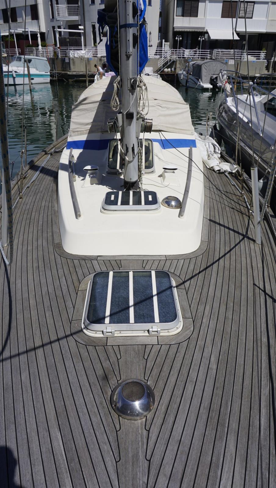 Alarme moteur, Ancre (DELTA 16 + 60m chain all new), Eau sous pression, Câble d’alimentation à quai, Plateforme arrière (in teak), Pompe de cale manuelle, Pompe à Eau de Mer, Prise de quai, Guindeau électrique, Echelle de bain, table de cockpit, Windex.