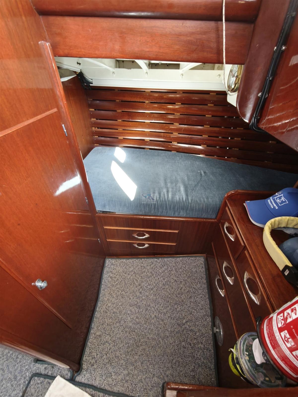 2 Ancre (5m Kette, 8mm), Eau sous pression, 4 Batteries (400 Ah), Passavant en teck, Chargeur de batterie (50A LEB), 2 Pompe de cale automatique, Cockpit en teck, Prise de quai, Guindeau électrique, Gréement monotoron, table de cockpit, Corne, 9 Winch (2 x 52 ST, 2 x 46 ST Andersen, 4 Schotwinschen), Windex.