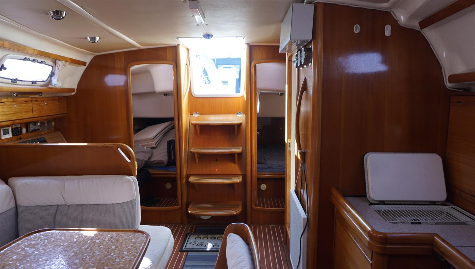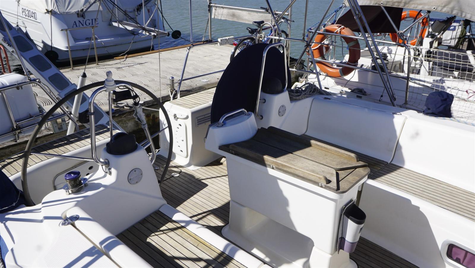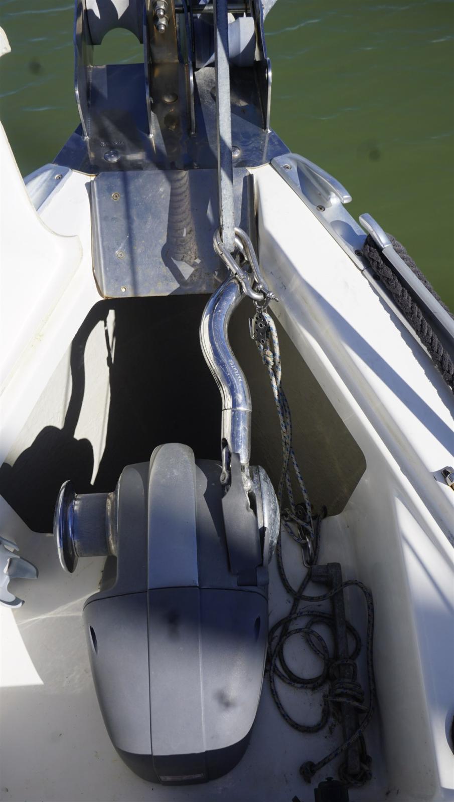 Alarme moteur, Ancre (+ 50 m 8 mm chain), Eau sous pression, Batteries (2024/2025), Passavant en teck, Douche de cockpit, Double barre à roue, Moteur hors-bord pour annexe (electr), Panneau solaire, Passerelle, Pompe de cale automatique, Pompe de cale manuelle, Cockpit en teck, Prise de quai, Guindeau électrique, Echelle de bain, table de cockpit, Annexe, Pont en teck, Windex.