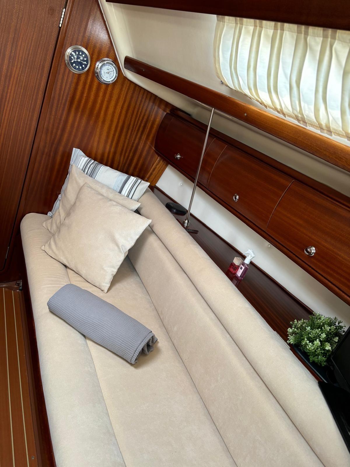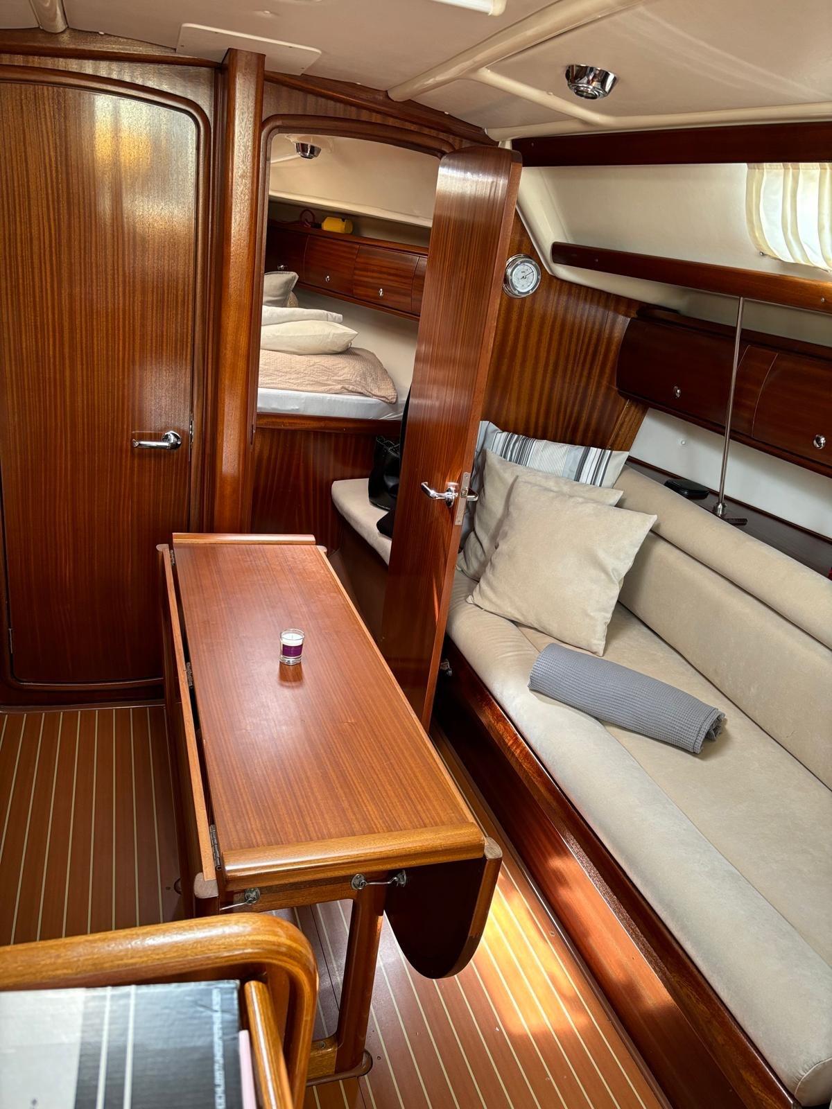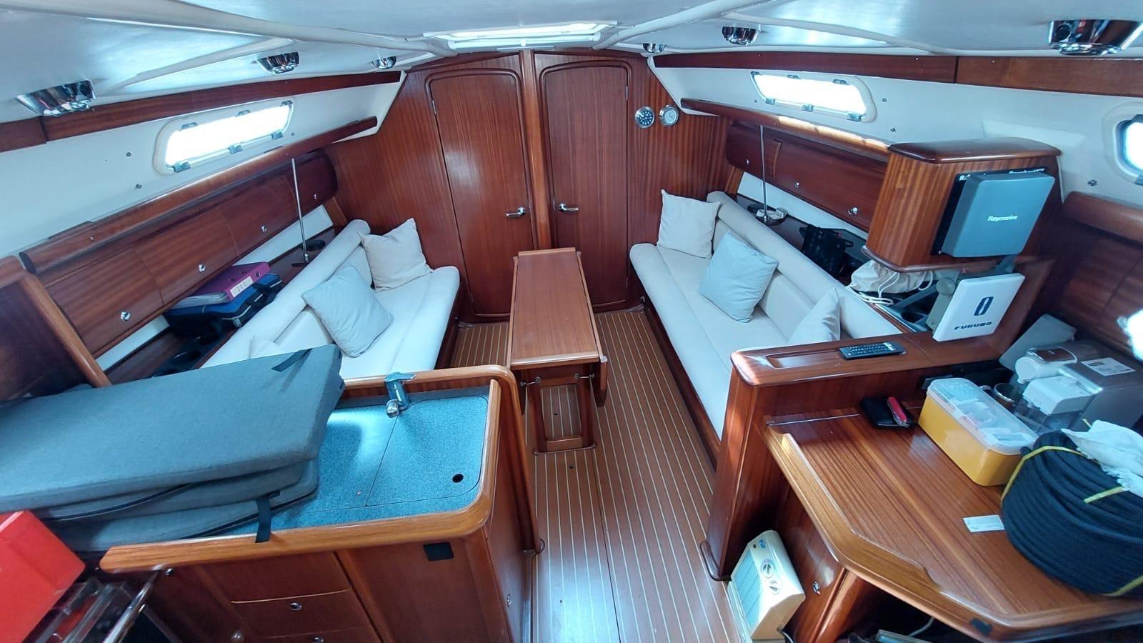 Eau sous pression, Batteries (x3), Douche de cockpit (cold + warm), Passerelle, Pompe de cale automatique, Guindeau électrique, Echelle de bain, table de cockpit, Annexe (NEW).