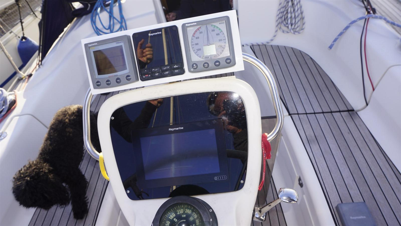 AIS, Indicateur d'angle de barre, Loch (RAYMARINE), Sondeur pêche (RAYMARINE), GPS (RAYMARINE), Loch (RAYMARINE), Pilote automatique (RAYMARINE 2017), Lecteur de cartes (RAYMARINE Axiom 9), Anémomètre/Girouette (RAYMARINE).