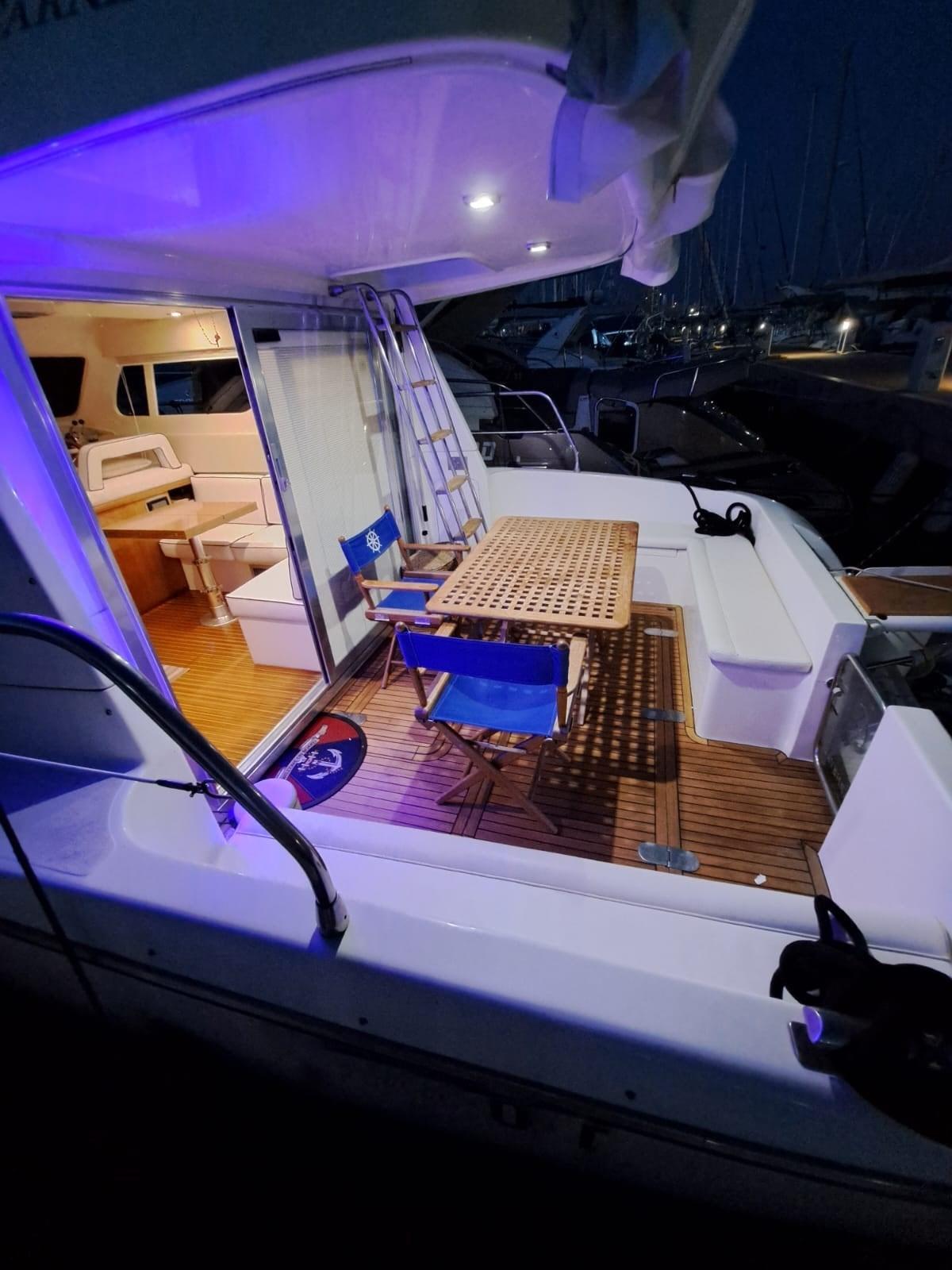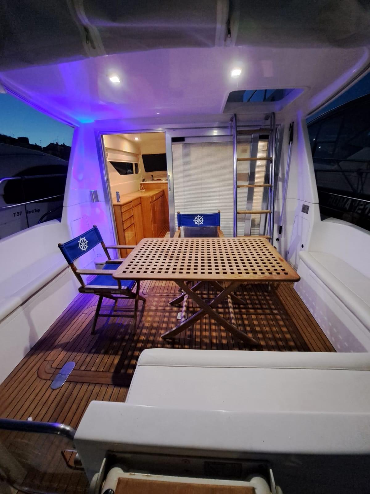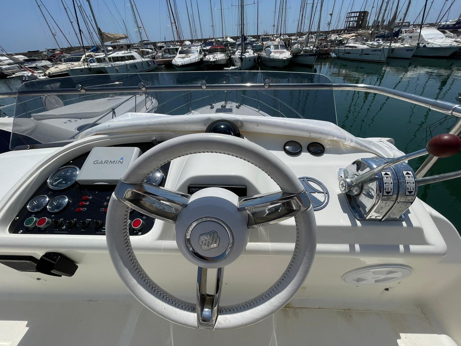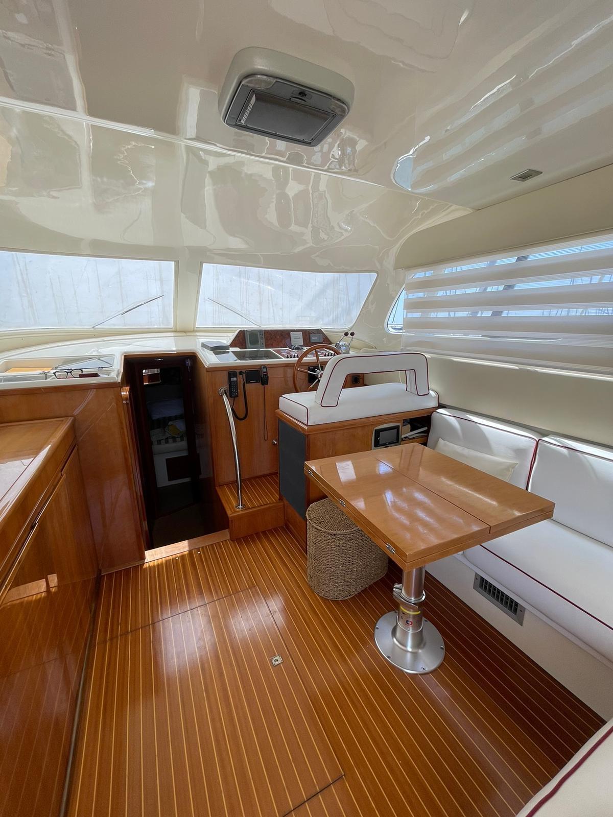 Flaps hydrauliques, Passerelle (idraulica), Cockpit en teck, Guindeau électrique, table de cockpit.