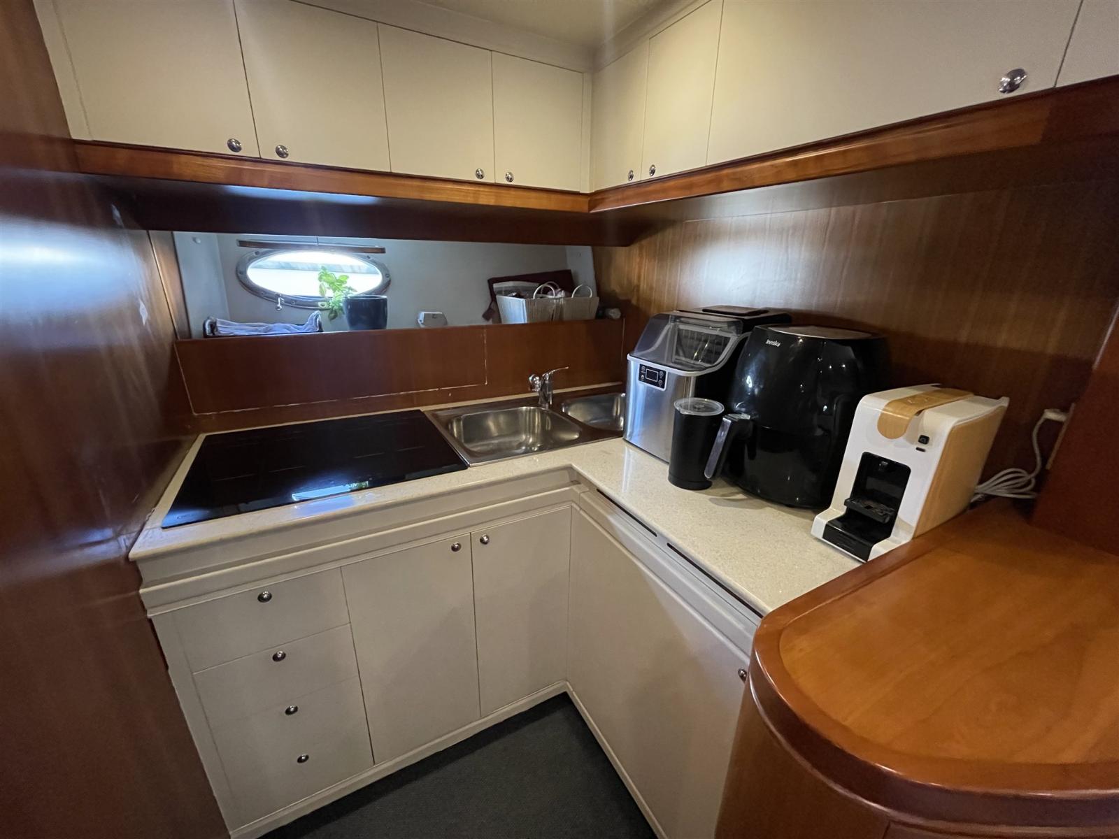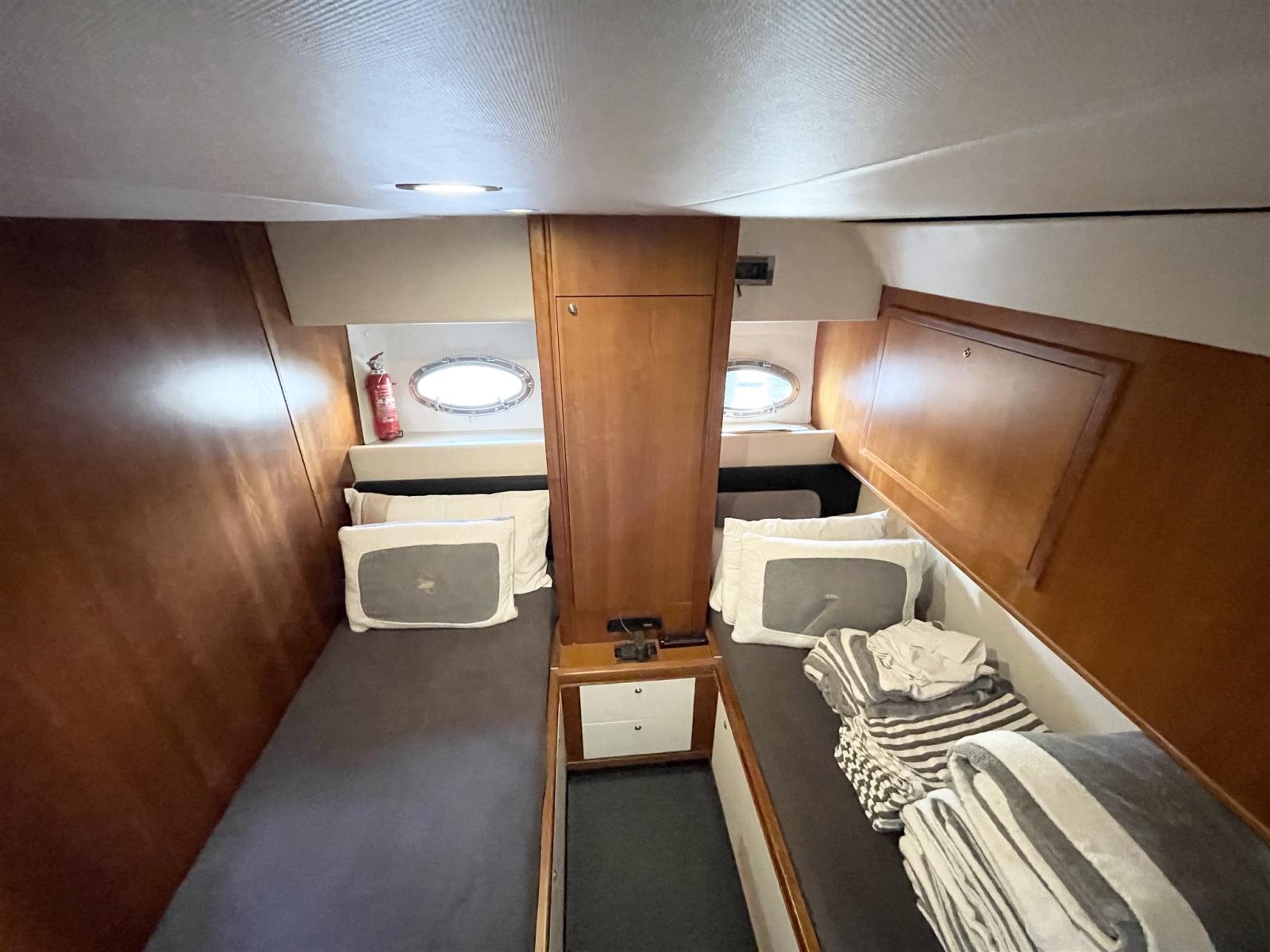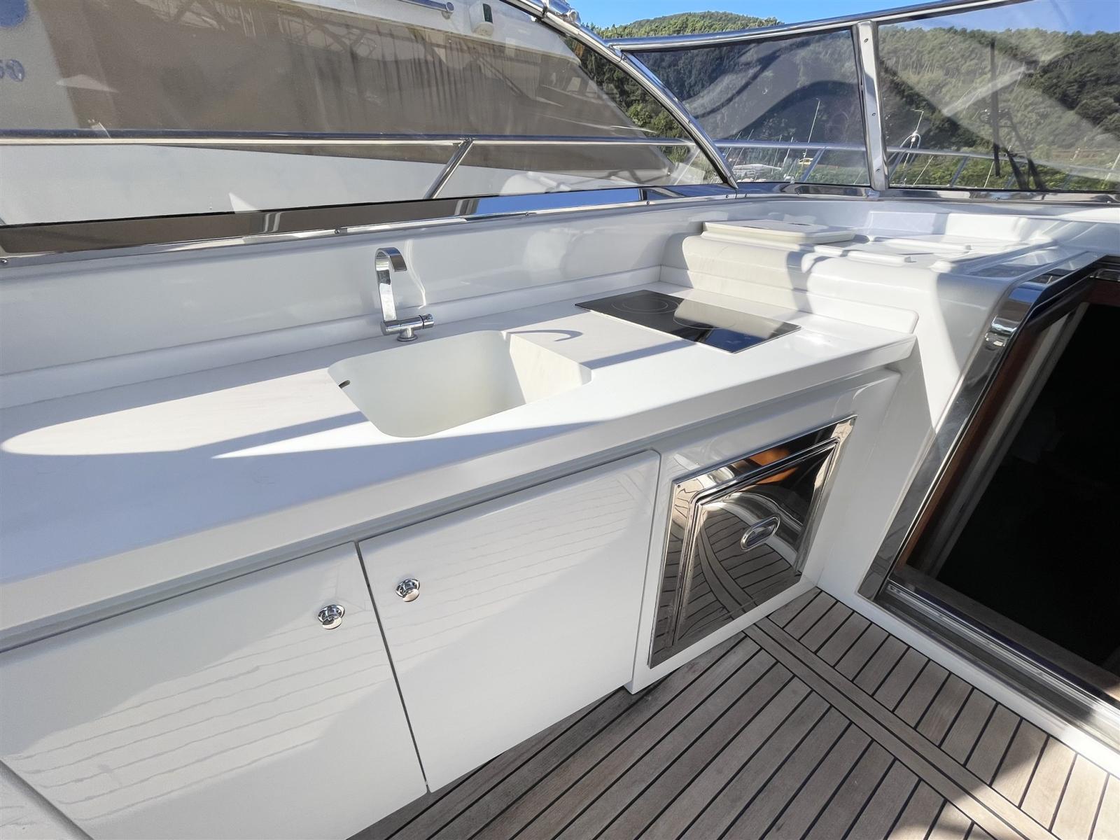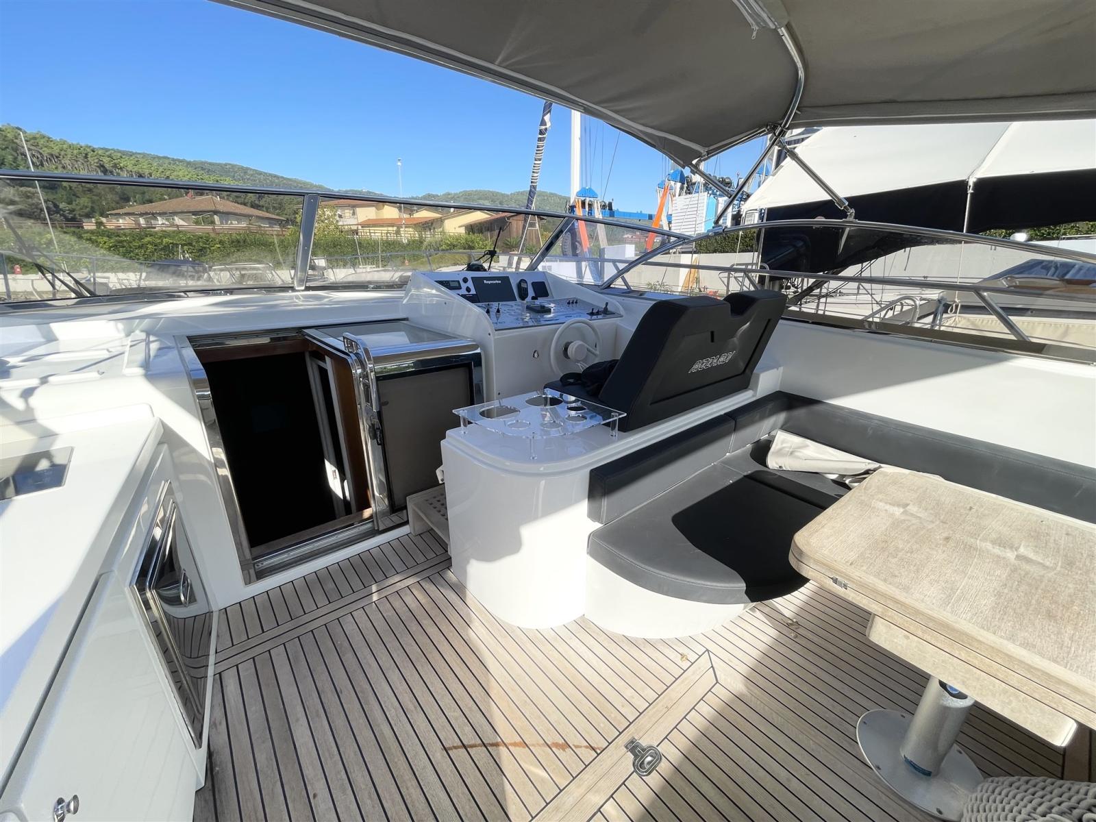 Alarme gaz, Alarme moteur, Alarme de pompe de cale, Flaps électriques, Extincteur(s) fixe(s), Indicateurs de flaps, Éclairage de courtoisie, Spots sous-marins, Passerelle, Pompe de cale automatique, Pompe de cale manuelle, Pont en teck, Cockpit en teck, Prise de quai, Connexion eau sous pression à quai, Guindeau électrique, table de cockpit.