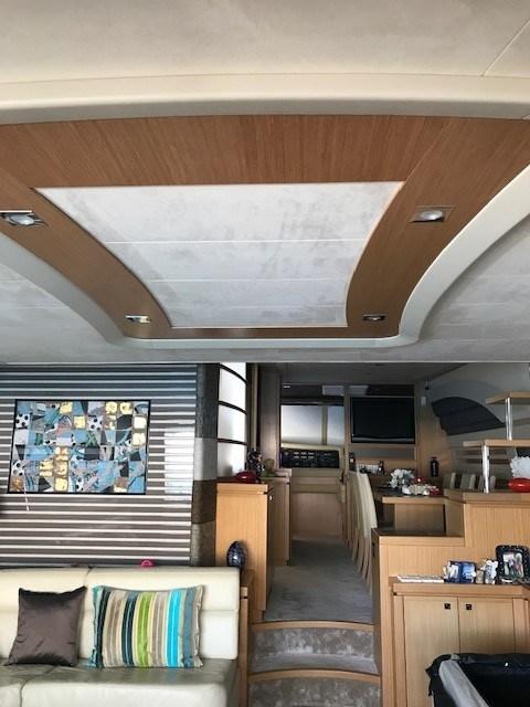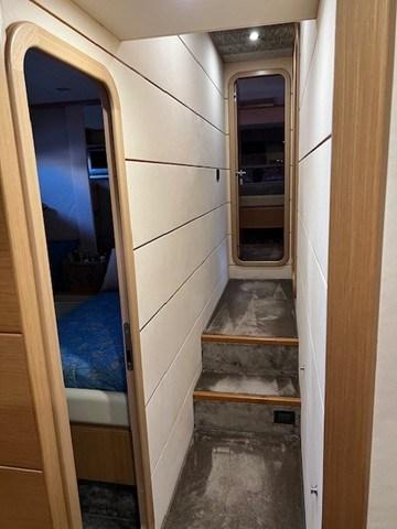 Intérieur léger en orme avec 4 cabines, 4 salles de bain + 2 cabines d’équipage avec salle de bain arrière.