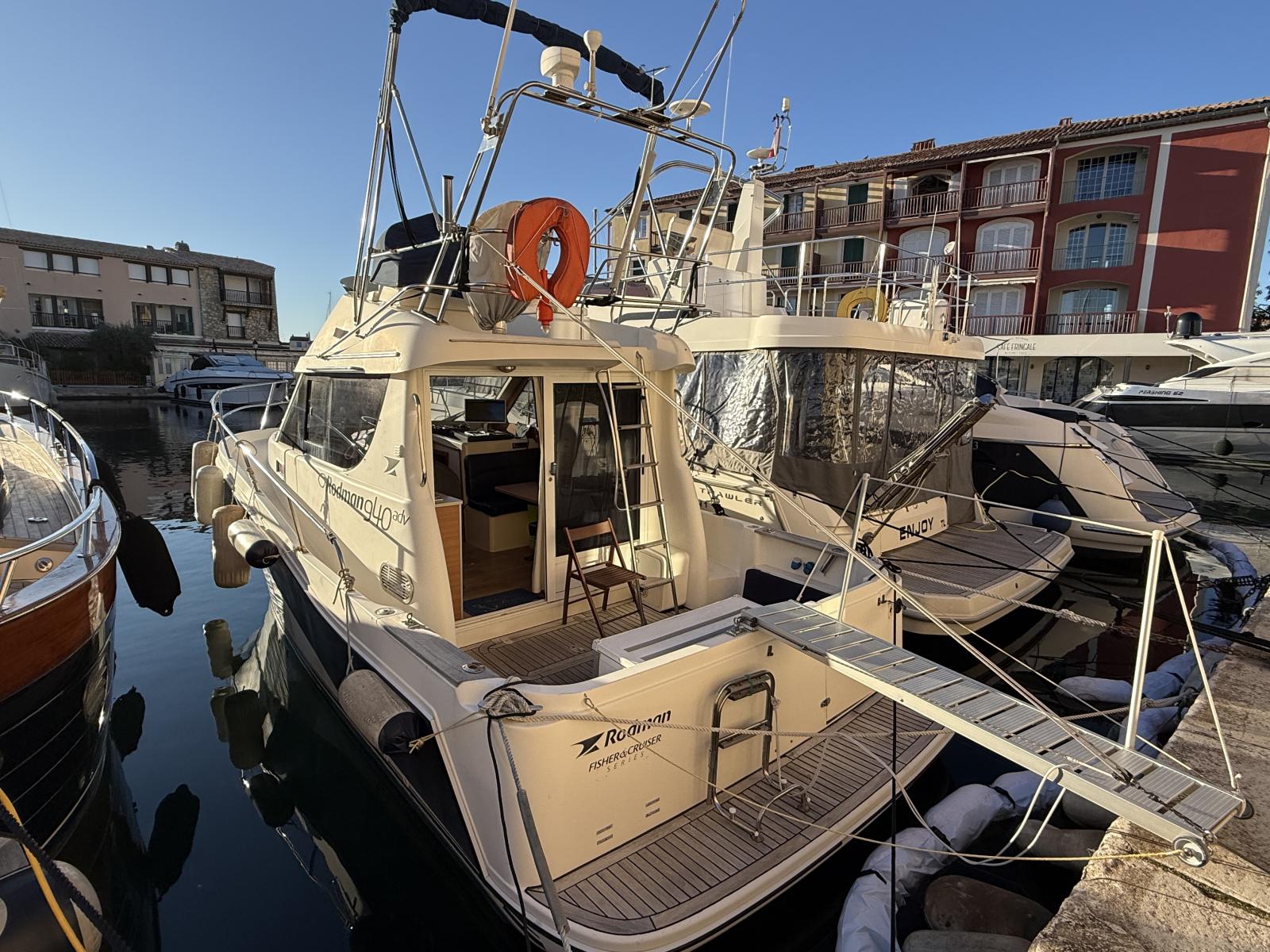 RODMAN 9.40 Fly de 2008, reconnu pour sa construction solide et sa fiabilité en mer. Il est motorisé par 2 X 225cv Volvo EVC D4 qui bénéficie d’un suivi et entretien minutieux.